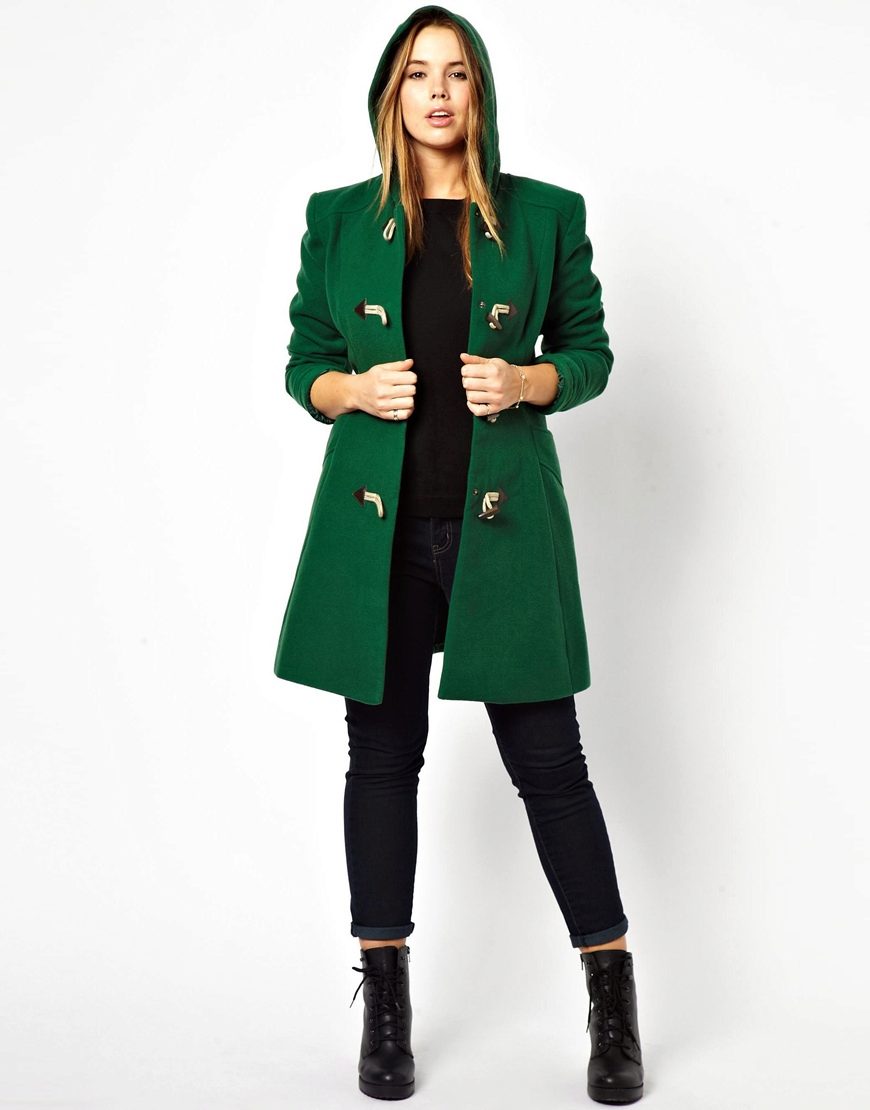 - Duffle coat This model can not be confused with anything due to the bright distinctive features in the form of buttons-fangs. Also, the classic duffle fleece necessarily has a hood.