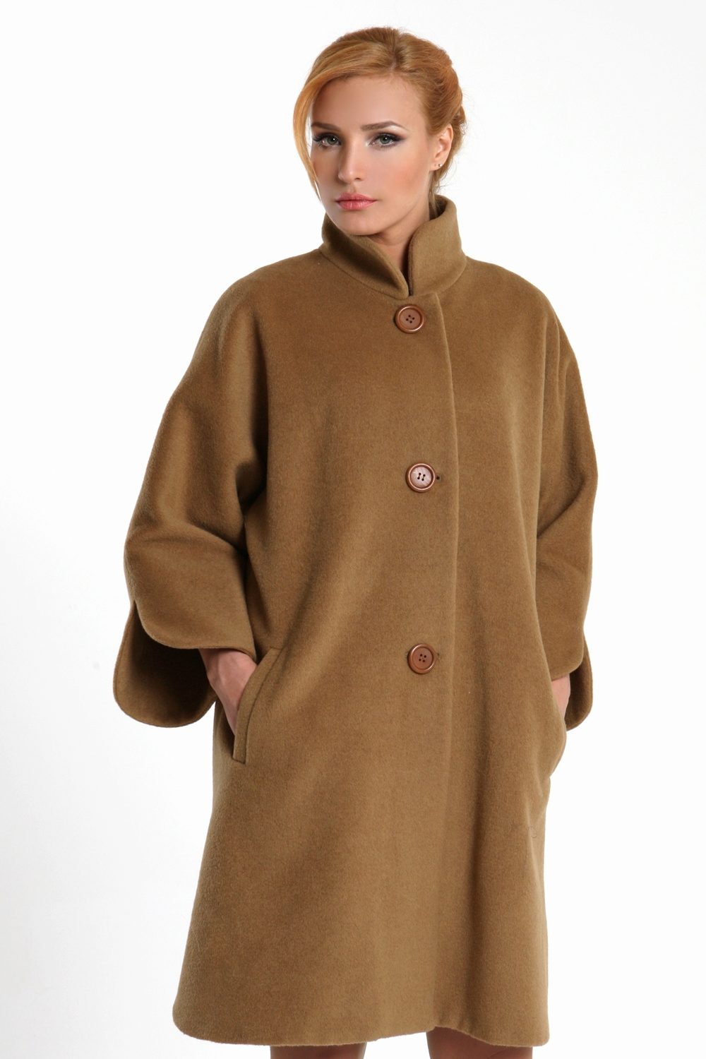 - Cashmere. Unlike previous materials, this one is very thin and light. But this feature does not prevent the cashmere coat from being warm. At the same time, this fabric allows you to create interesting frills and ruffles.