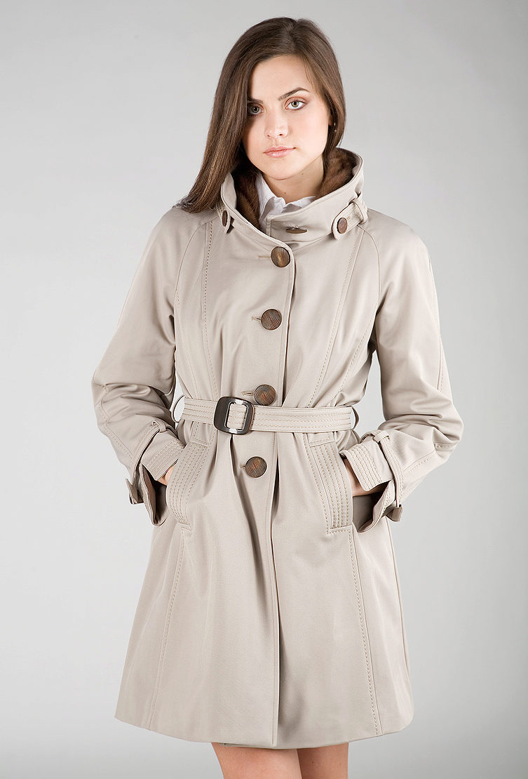 - Trenchcoat. Literally translated from English means "trench coat." The style was popularized by the British brand Burberry, and for many years it has not gone out of fashion. Models for the full are available in length to the knee or slightly higher. The main advantage - such a coat visually makes the hips already and smoothes the roughness of the figure.