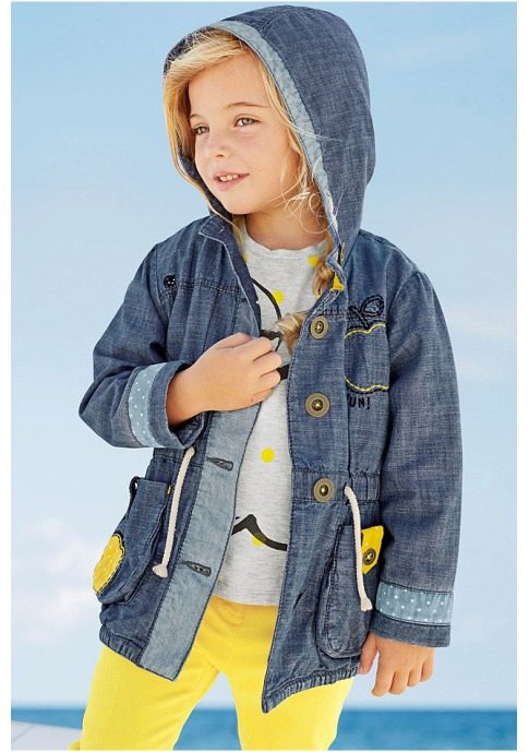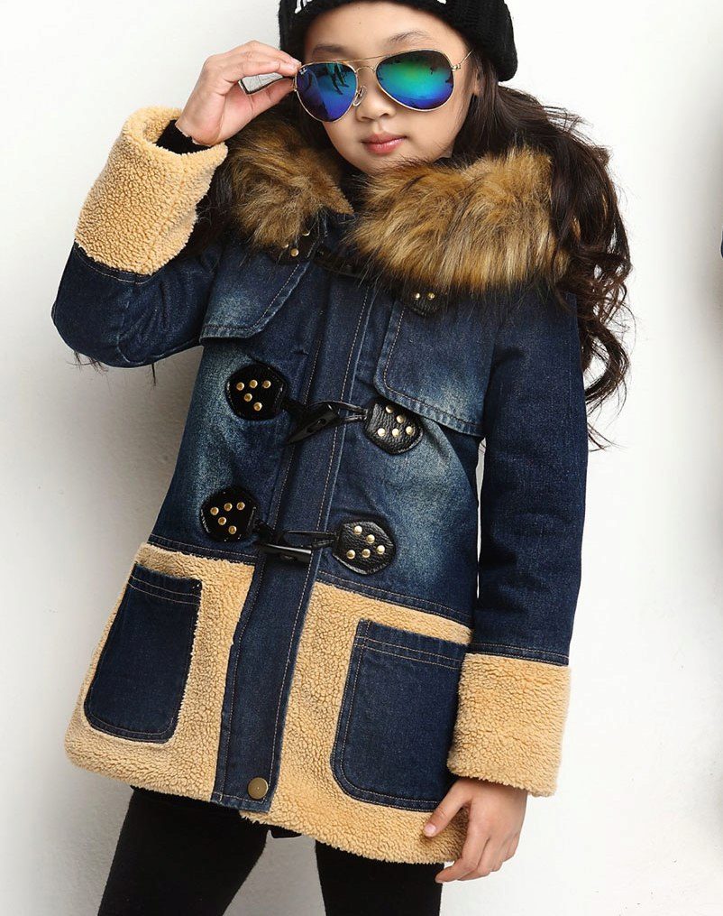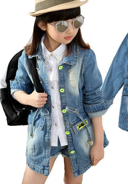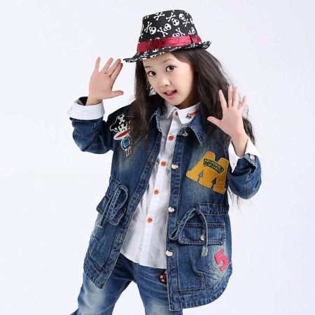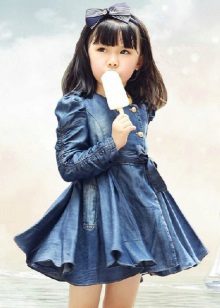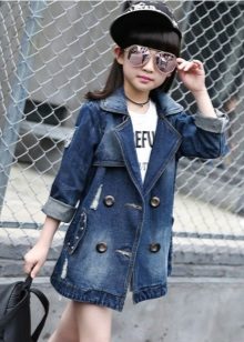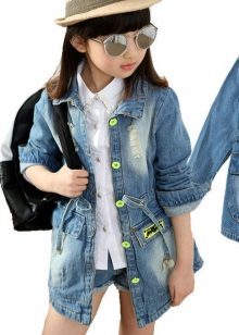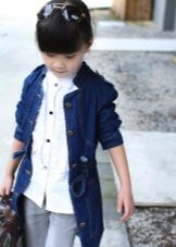 Denim things are quite easy to combine with the rest. Therefore, it is very difficult to imagine hangers and shelves of the closet without the usual denim pants, skirts and jackets, especially for children. A coat looks very nice on girls, so it will take a worthy place in the wardrobe of a young person.