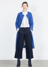 To get a traditional style, it is necessary to add tight pants, a classic shirt, a turtleneck or a pullover to a denim coat. From shoes, the best option would be high boots on a low run, although for a shortened model it is better to choose simpler shoes (boots or boots like cowboy's).