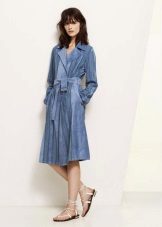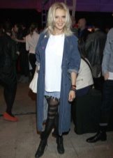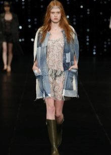 Young girls, who are close to the romantic image, will need to combine a denim coat with a light dress, preferably in light shades. Regarding the choice of model dress special restrictions are not installed: concise case, playful flare, fluffy skirt - what your heart desires, such a dress and choose.