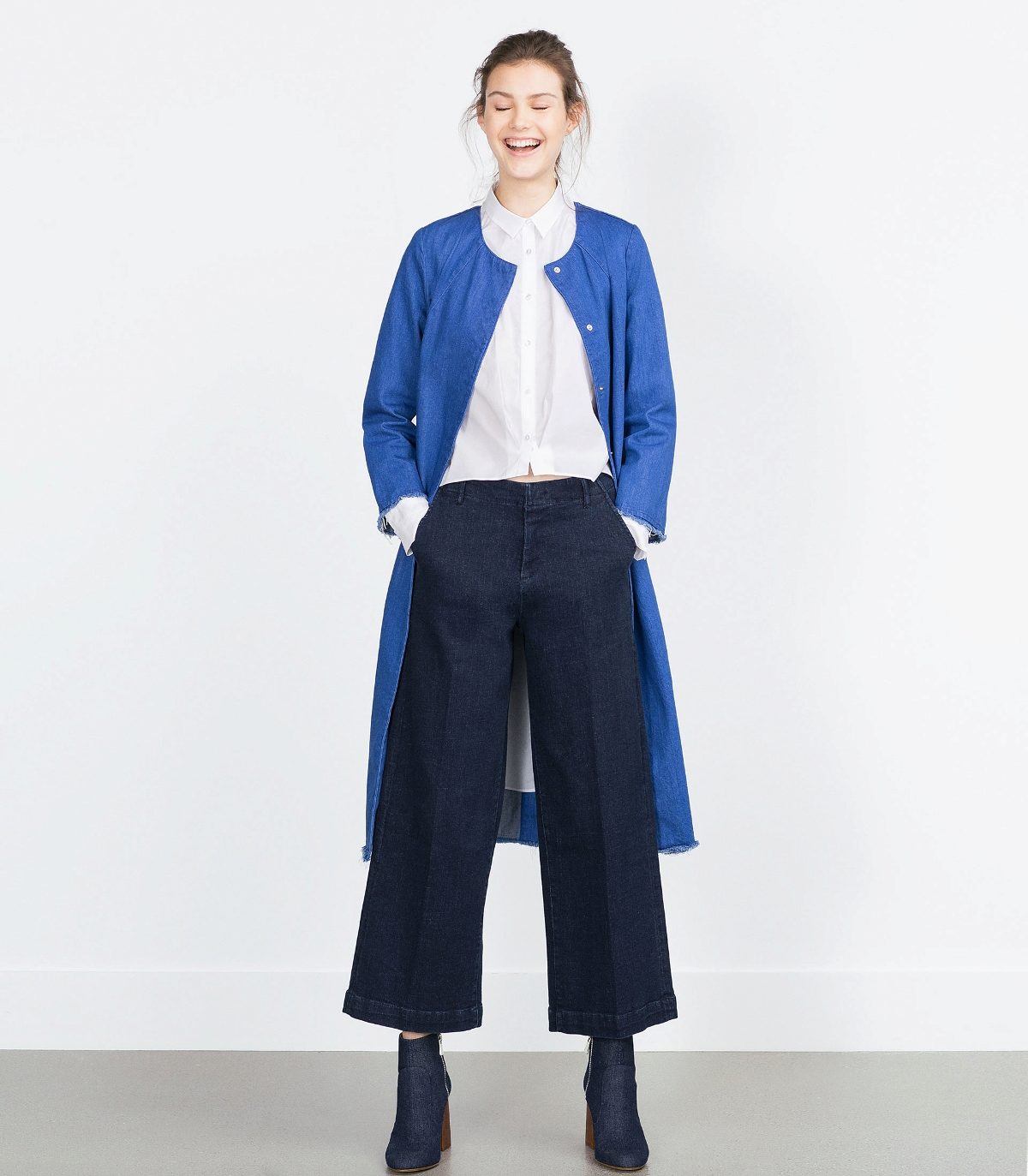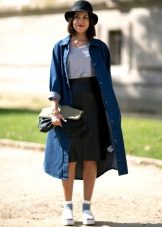 - If the extra centimeters accumulated at the level of the hips, then the denim coat-trapeze will be an ideal option.
