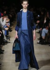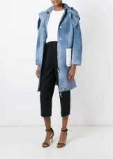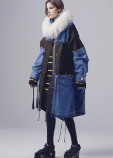It is difficult to imagine that the original denim material was used to create exclusively working clothes. And only some time later, the designers considered in this material a huge field for creativity and a number of advantages that were not limited to only strength and durability. As a result, jeans became actively used to create summer, demi-season and warm clothes, in particular, a coat.