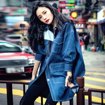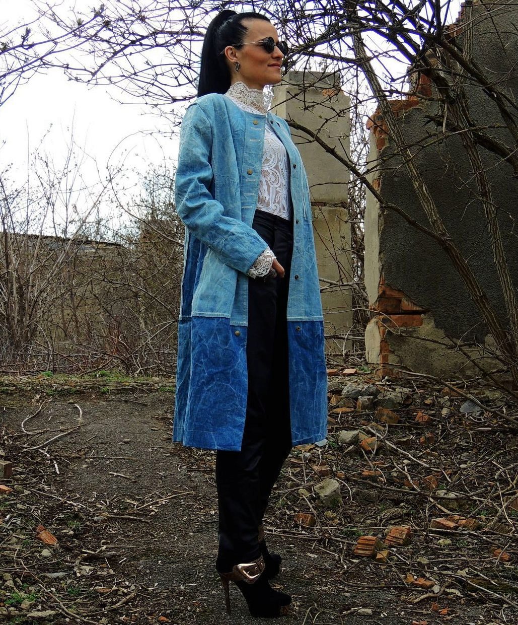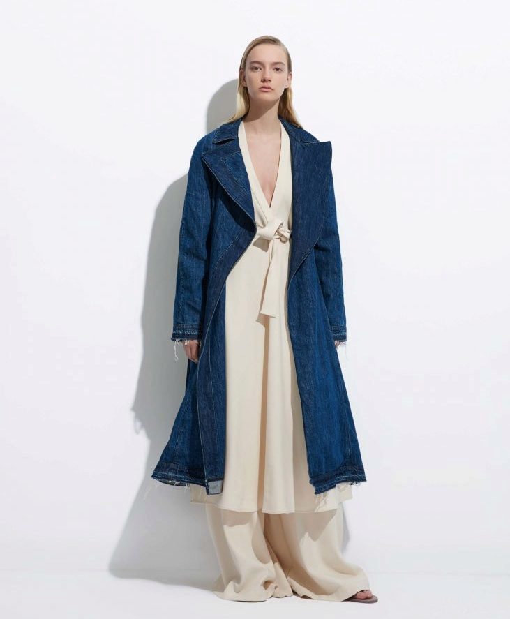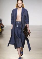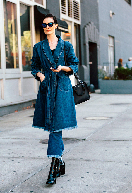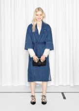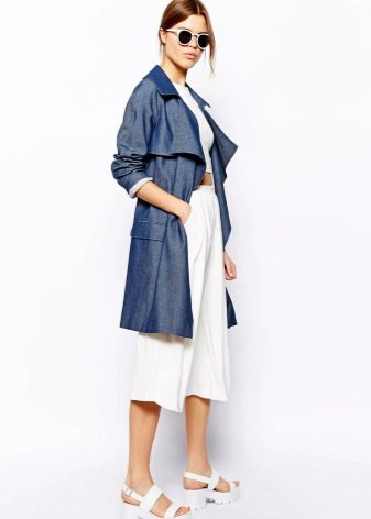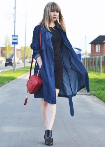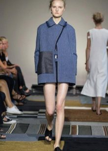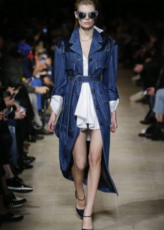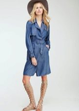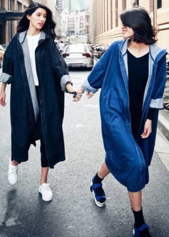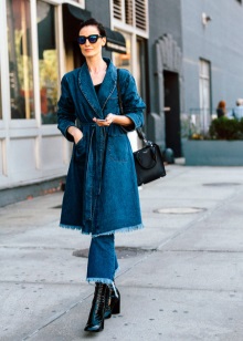 - Denim allows you to create a wide variety of diverse models. Among them, demi-season coats are the most popular, for which dense or lightweight materials are chosen.