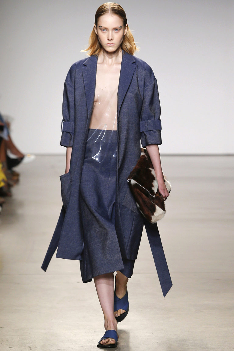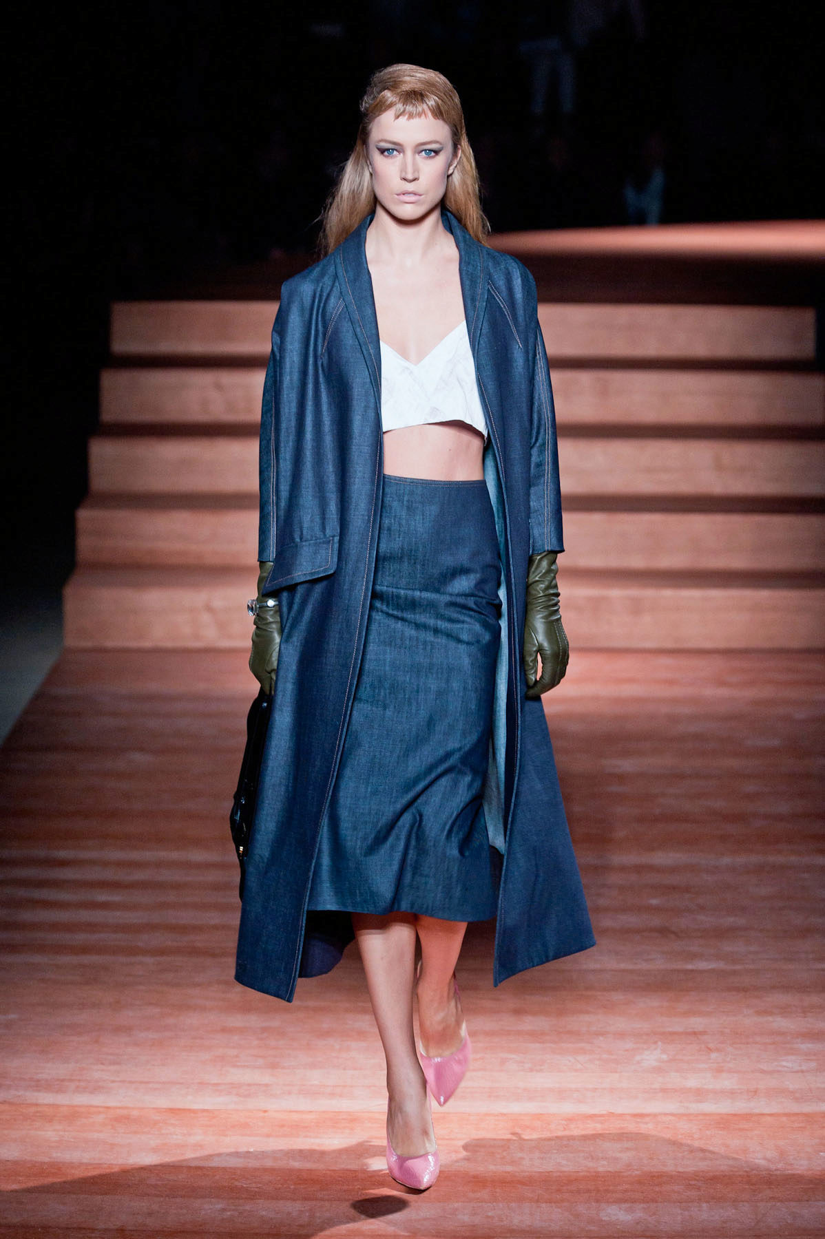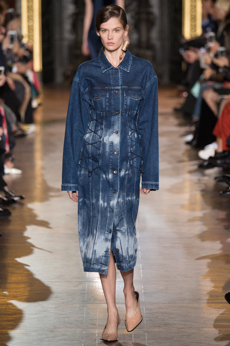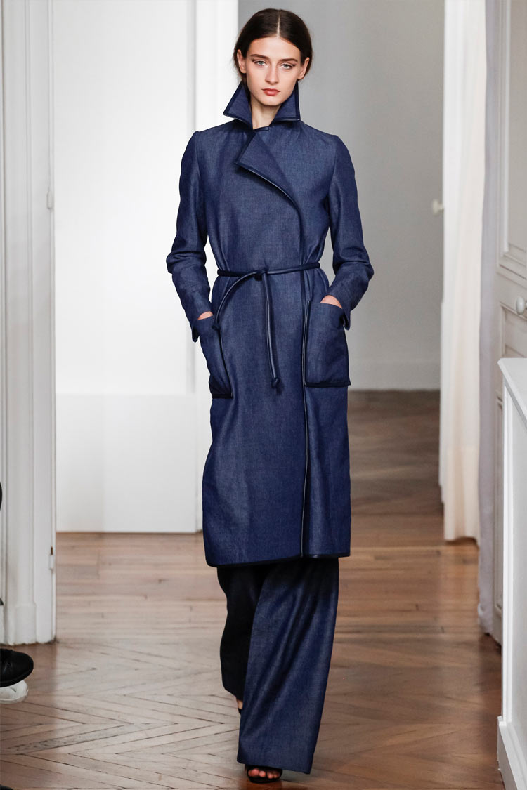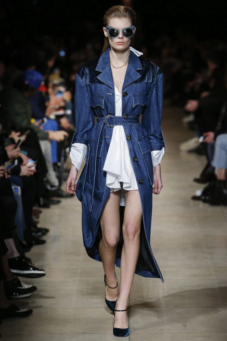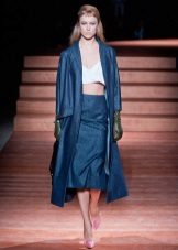 You can create a business look from a denim coat, but it must meet two conditions: dark blue or black color and classic style. Designers made concessions and added accessories to some models, realized unusual silhouettes and created a worn effect on the material.