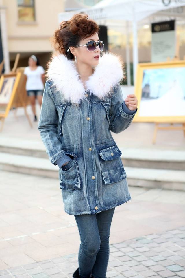 Most often in a denim coat is used knitted lining, knitwear or fleece. Some designers even with the help of natural fur warm their models, such a coat can be worn even in winter.
