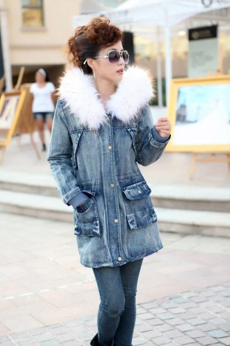 A denim coat with fur is exclusively for winter. In such clothes you will certainly stand out from the crowd of people who for the most part choose shapeless down-padded coats of inconspicuous colors for winter.