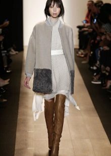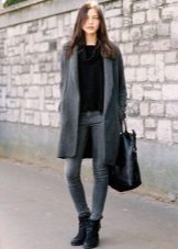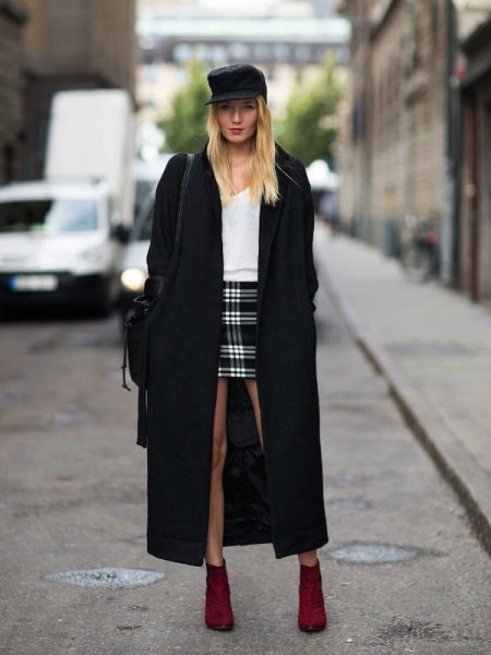 Good fit allows you to combine the model with other things. True, the coat is soloing here, and the rest of the wardrobe elements only play up to the example. As a result, you can get an eclectic bow. And straight trousers, jeans, fitted skirts fit into the set. Dresses or pants free cut in this case is not appropriate. But, oddly enough, you can wear heels to the oversized coat.