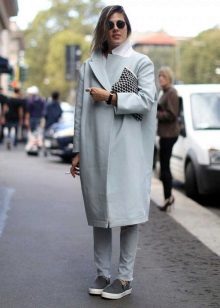 Coat oversized. This name has a coat thanks to its cut. Coat models can be straight cut or slightly fitted. But the main thing is that as a result a more “blurred” image will be created, not highlighting the shape of the figure. Such coats today are women of different ages and builds.
