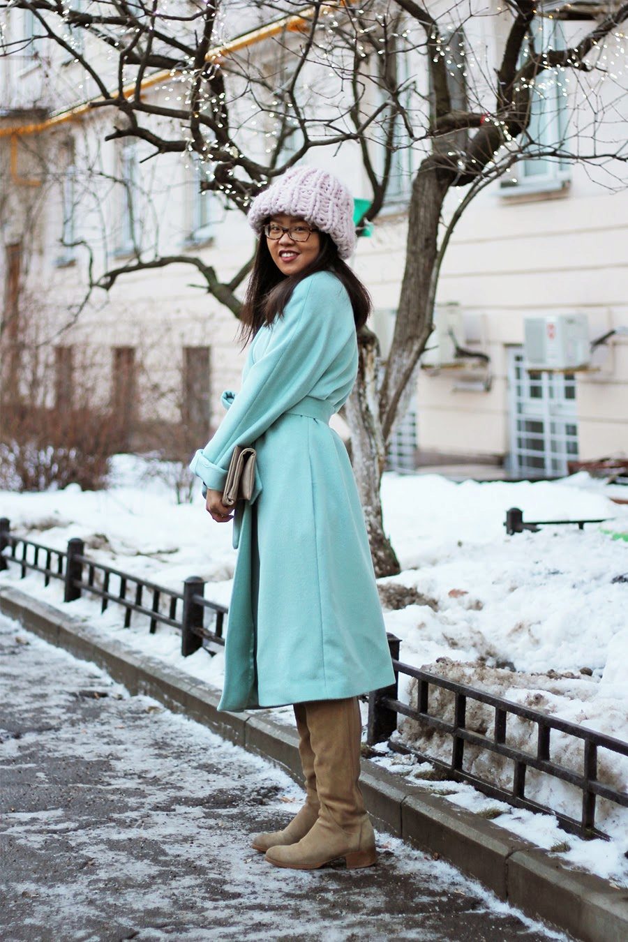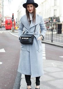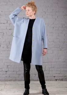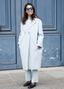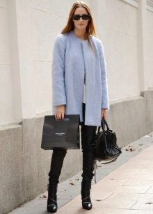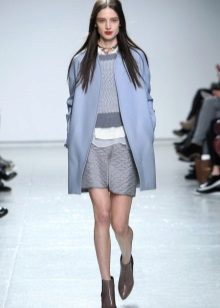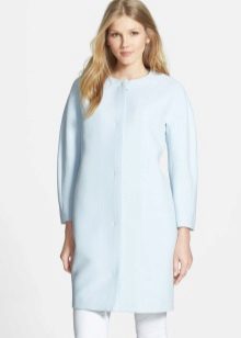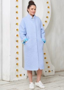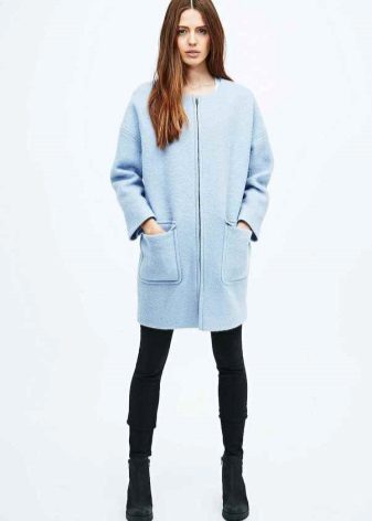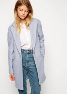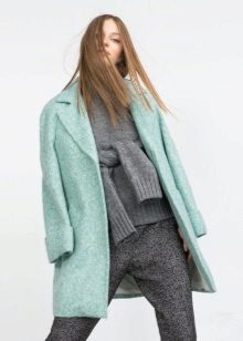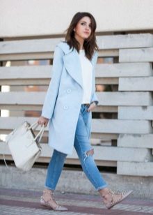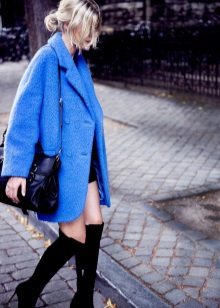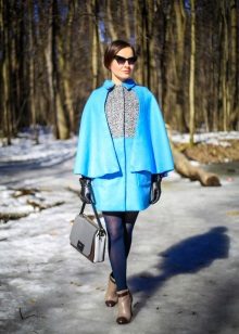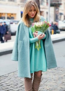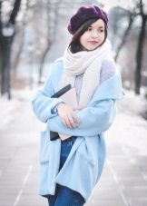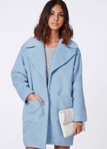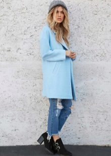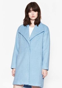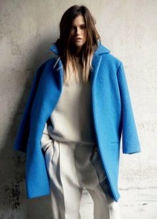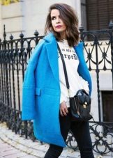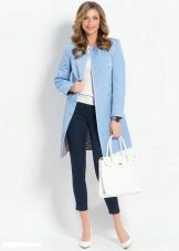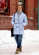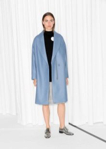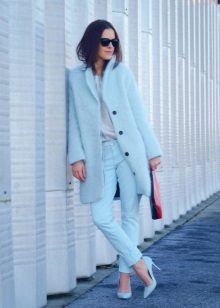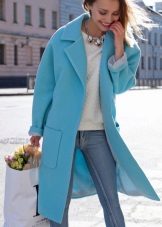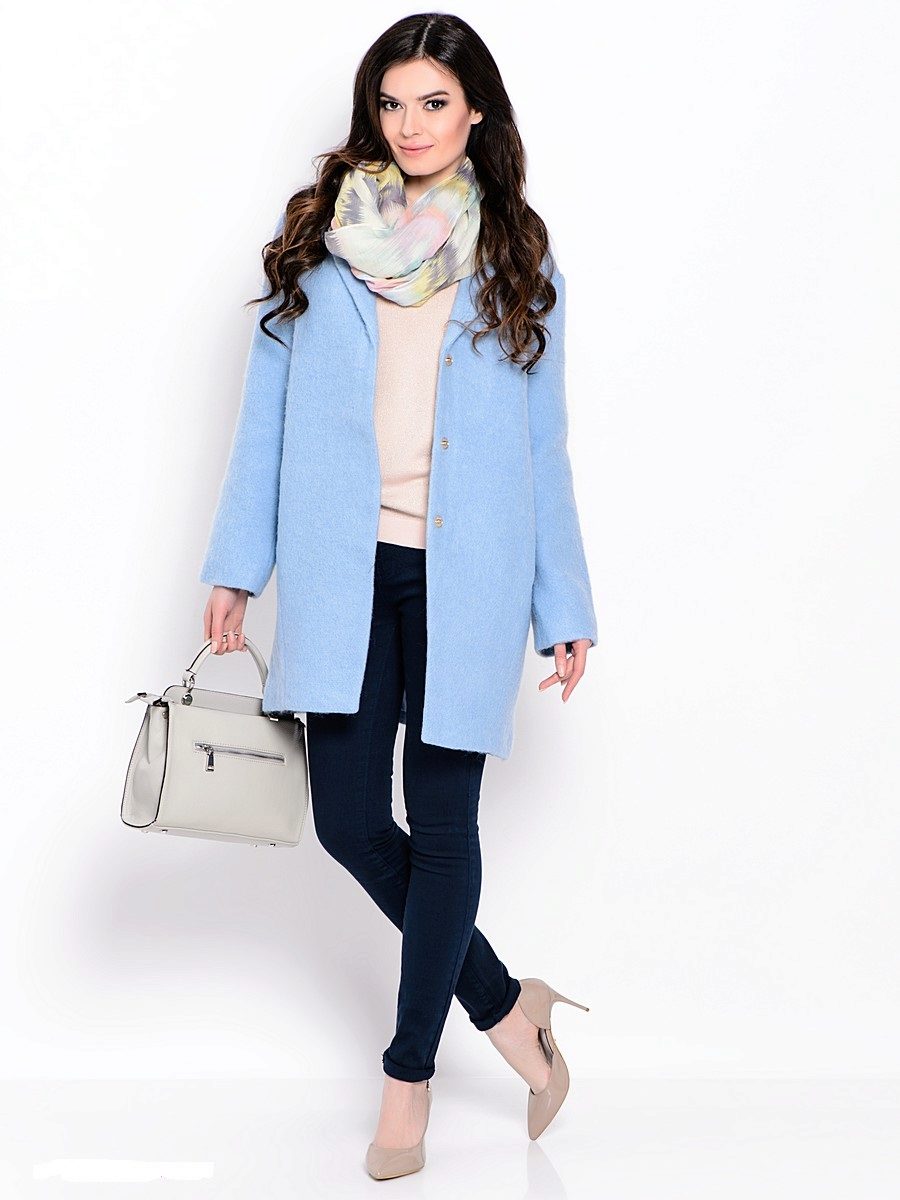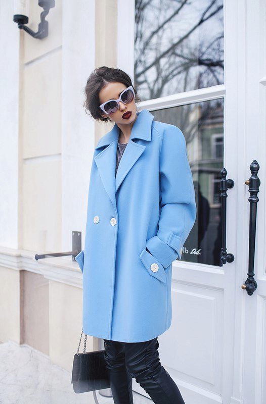 Also a win-win option - rich shade of blue and blue, so the coat of heavenly shade looks great with denim clothes, whether it's a skirt or pants.