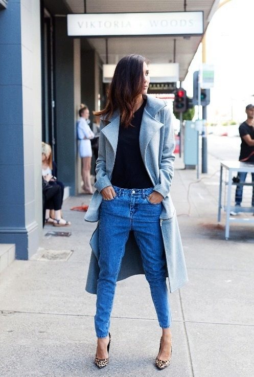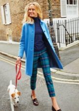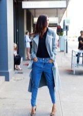 For a blue coat, jeans of any style are perfect. They can be blue, blue or black - all options are good. If you replace jeans with pants, get a stylish business look.
