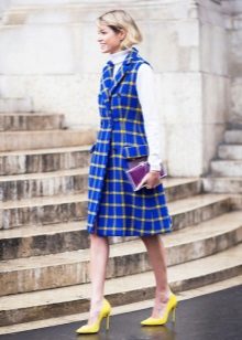 Choosing shoes in a blue coat, note the white, black or beige color. The bag in this case, you can pick up the tone of the shoe or choose a model of a contrasting color. For example, a beige bag will look good with black shoes, and a white or blue suit for beige shoes.