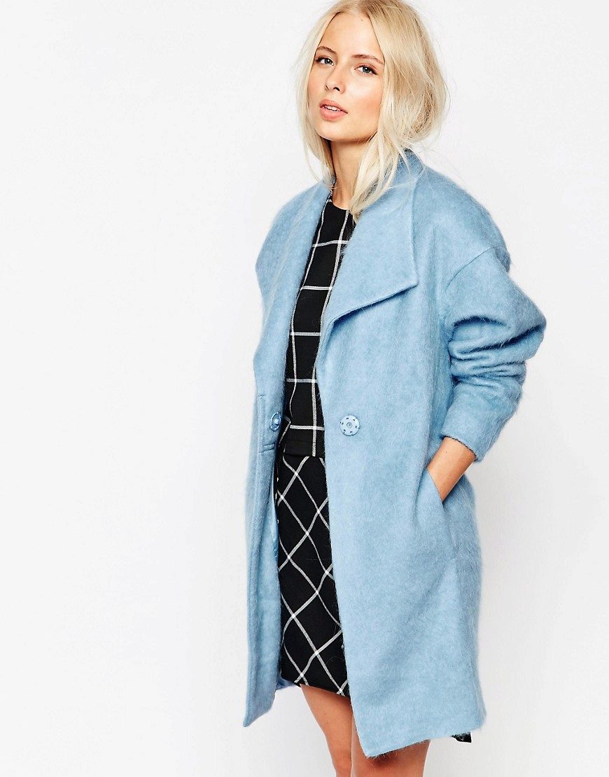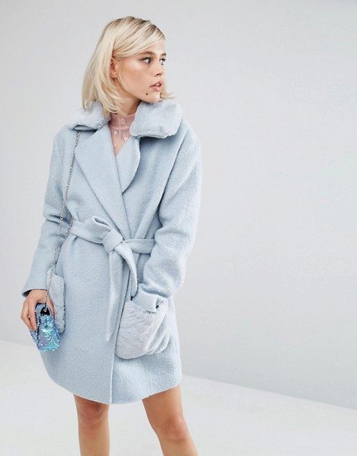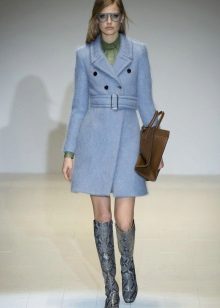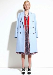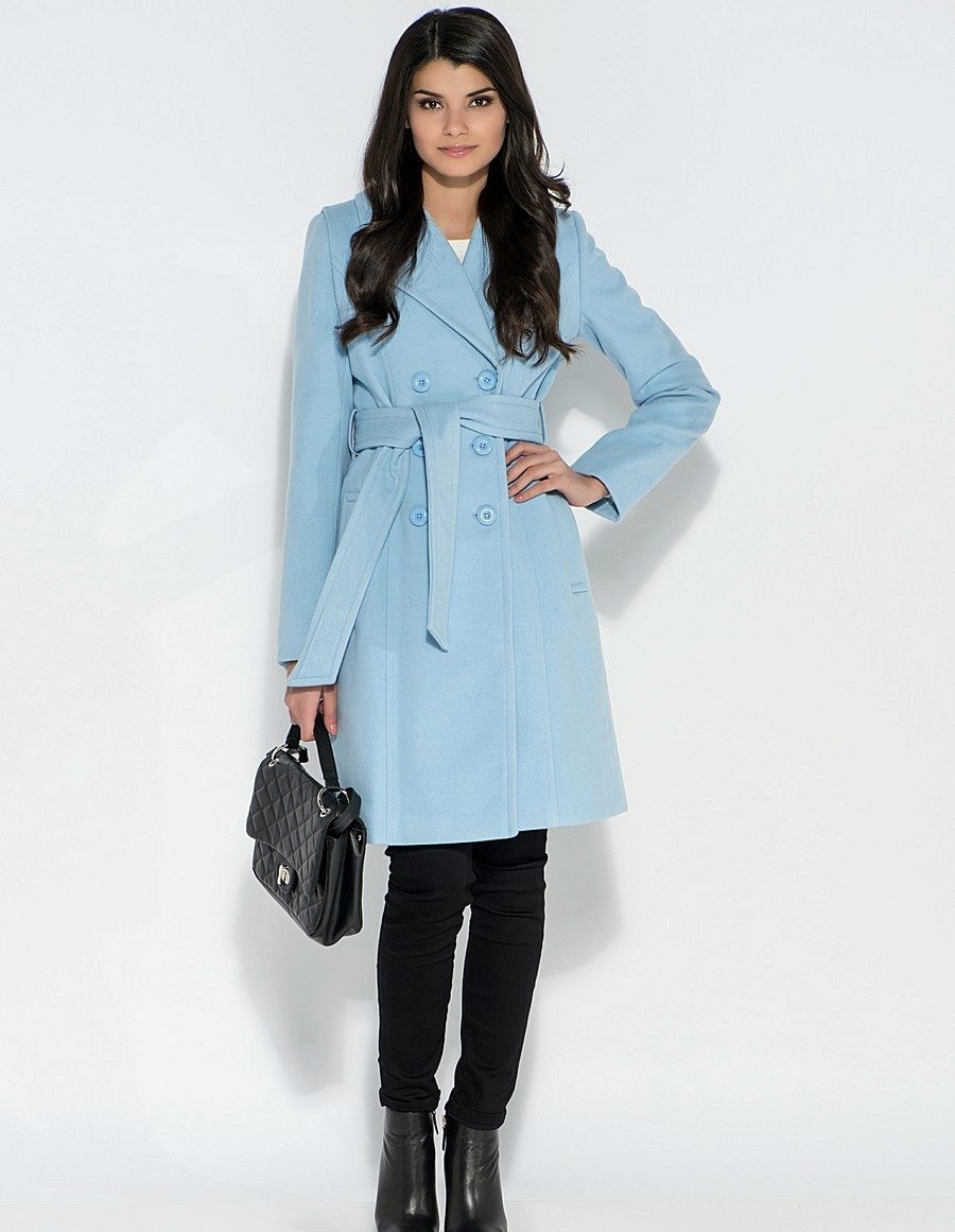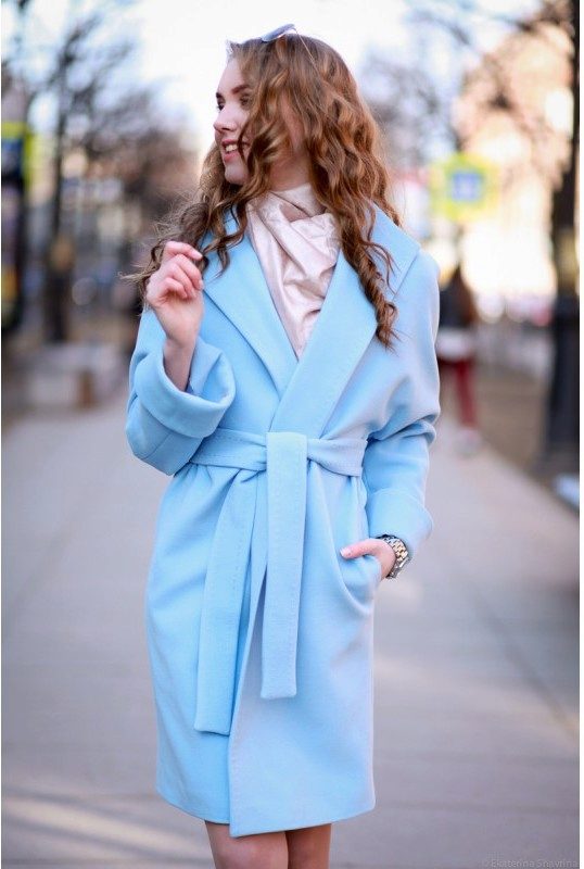 The blue coat suits owners of dark and light hair. Particularly attractive in clothes of blue color will be the girl “spring”, whose gentle image is perfect for this color.