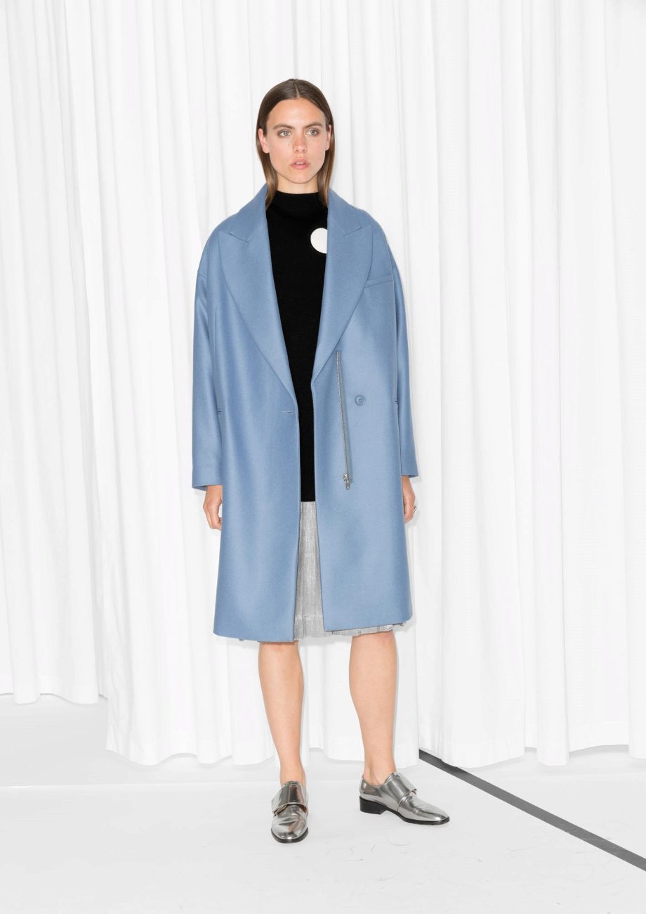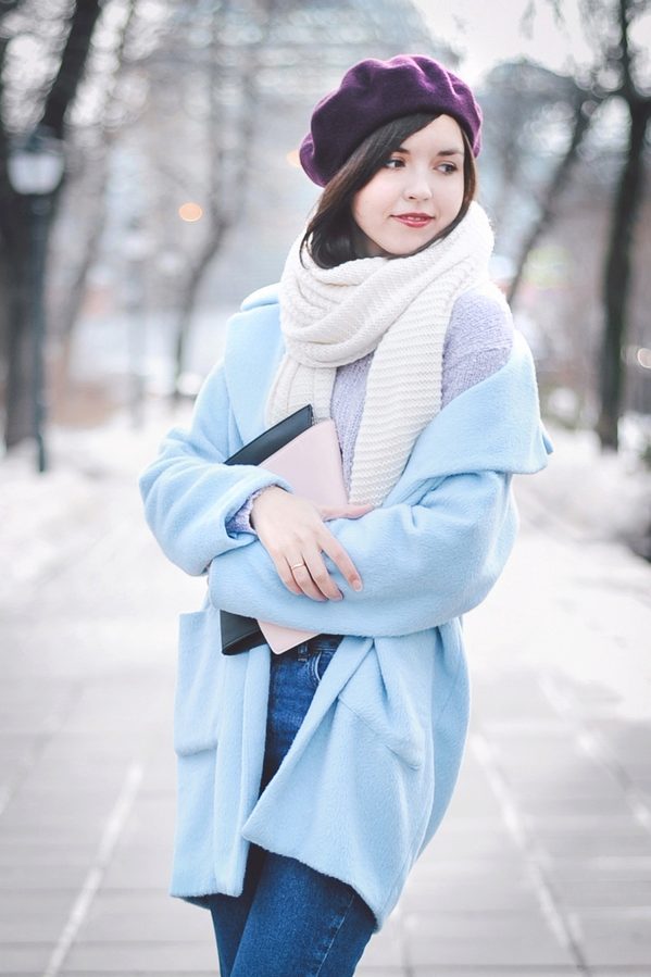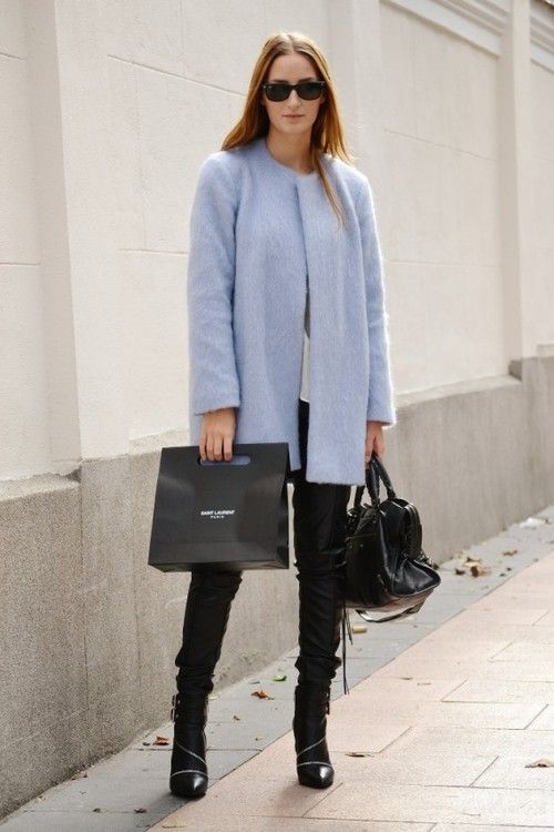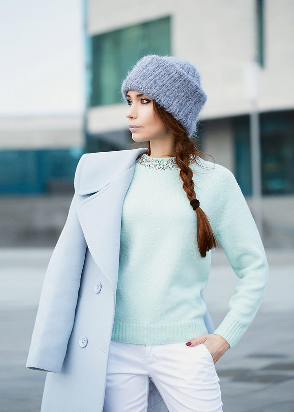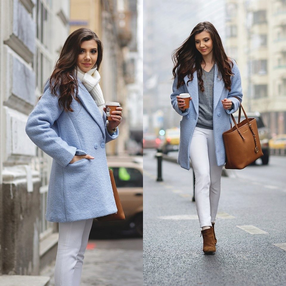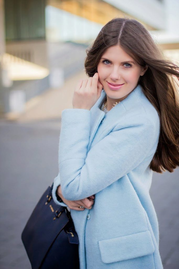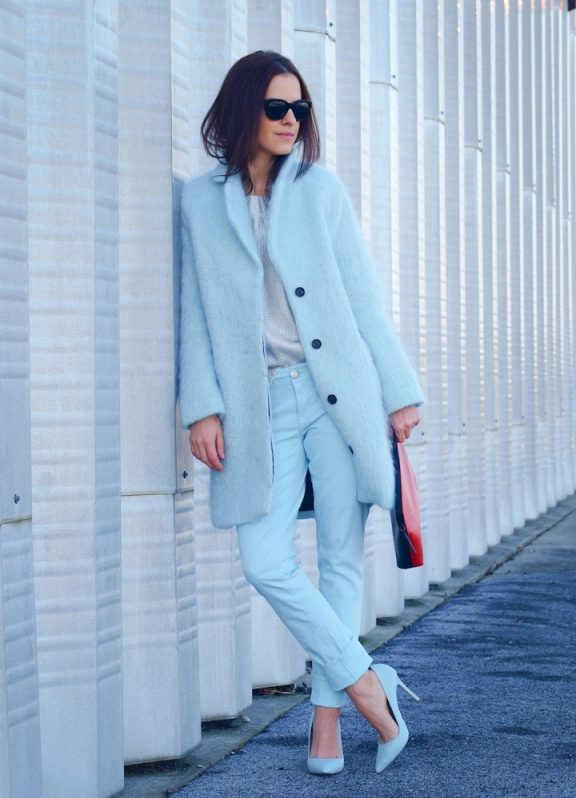This is a very calm, nice looking shade, so do not be afraid to get a soft blue coat. It will successfully fit into everyday and business wardrobe.
