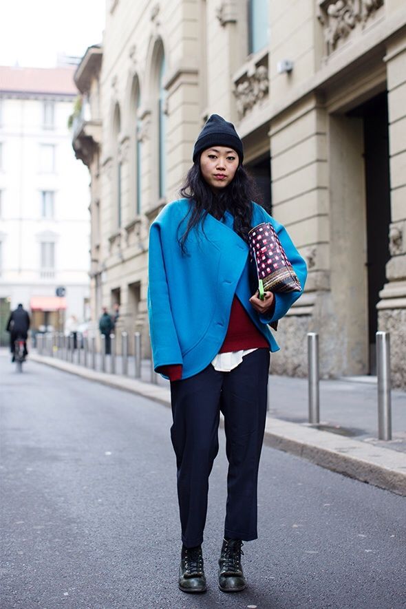 If you want a quieter combination, wear a coat with black, chalky white or dark brown.