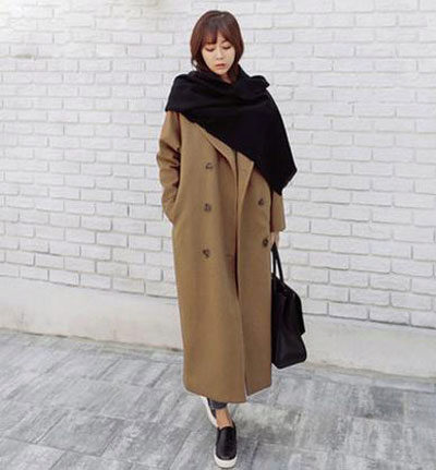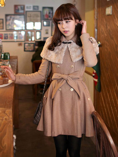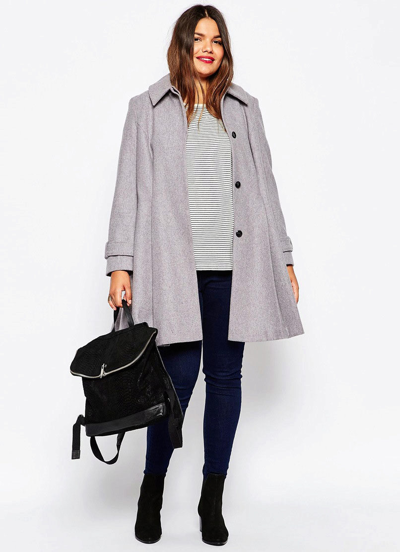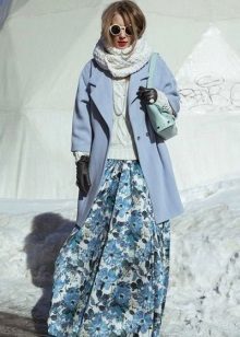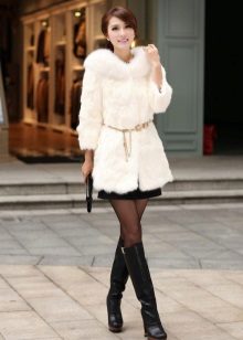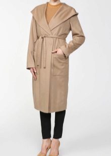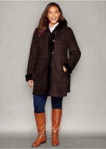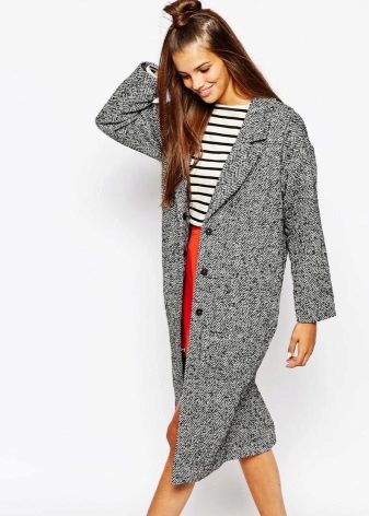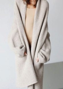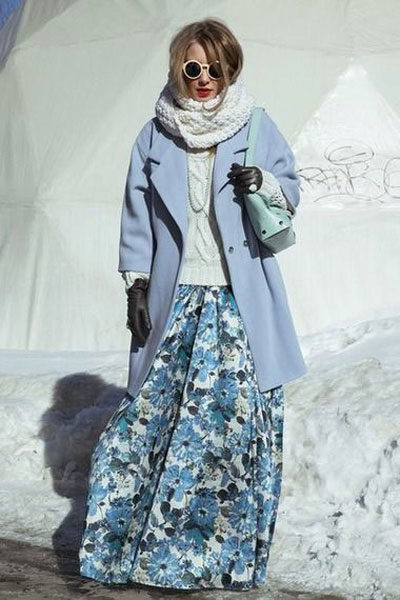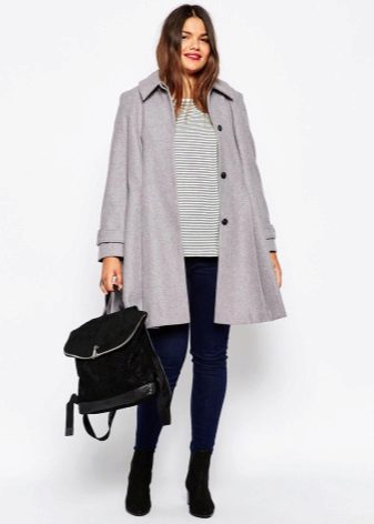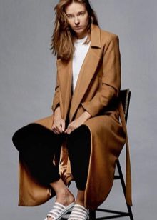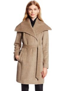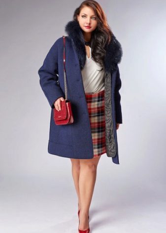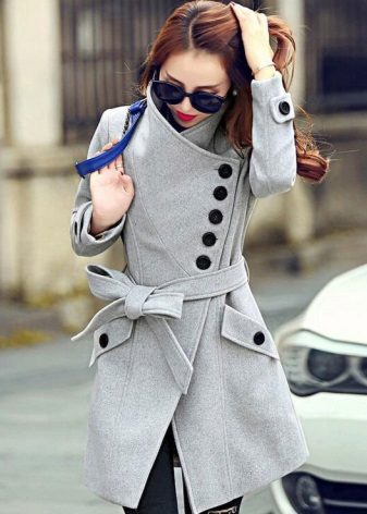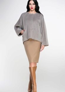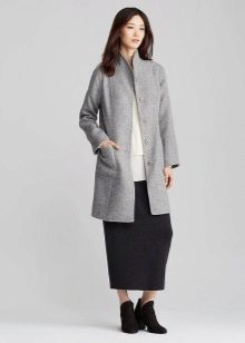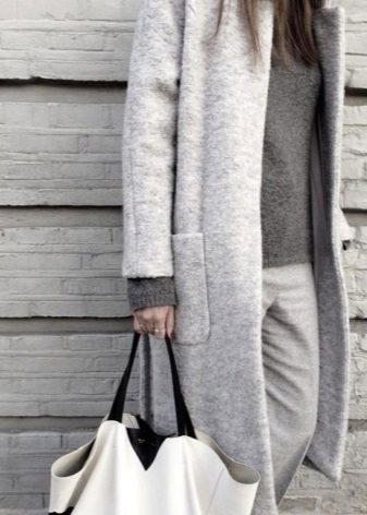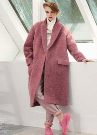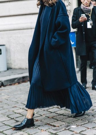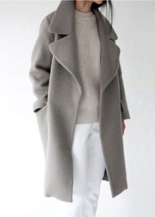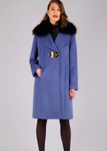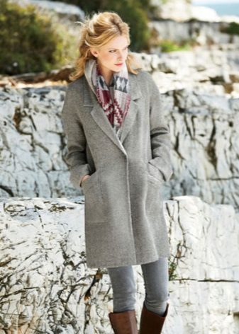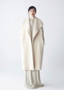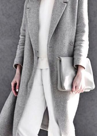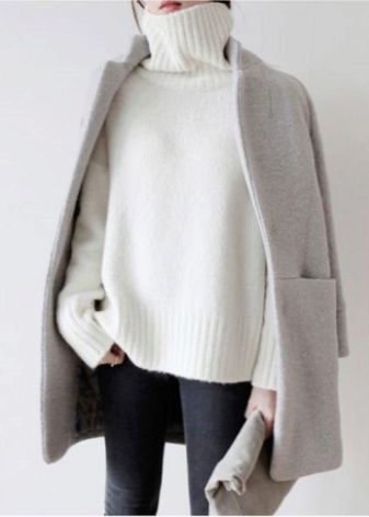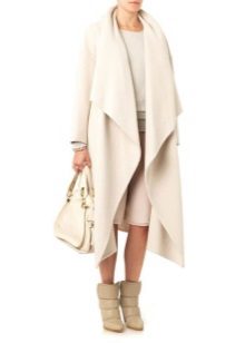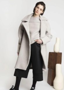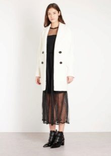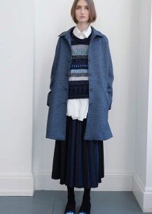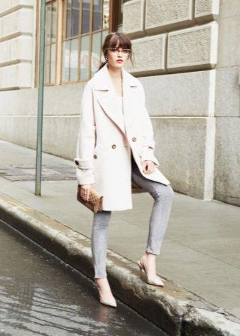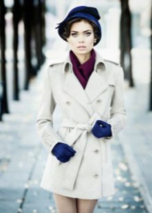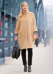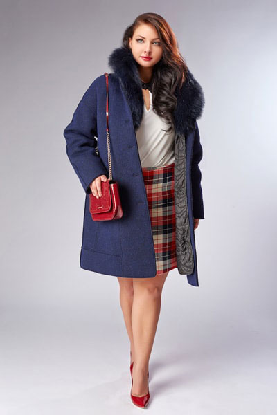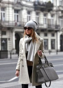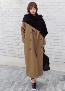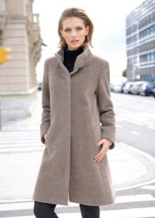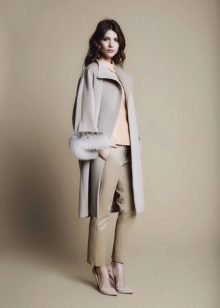 Lovers of refined classics will like a beige or gray knee-length coat with a voluminous collar. Here you should wear a skirt suit or office dress. A cocktail dress will look great on an evening out under such a coat. Warm tippet and tight tights will complete this ensemble. Shoes should be high heels, bag - massive, roomy.