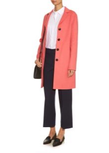 A short coat of dark color is best combined with jeans of a classic hue of indigo or with strict black trousers with a skinny silhouette. In the first case, rough shoes are ideal as a shoe, in the second - high leather boots.