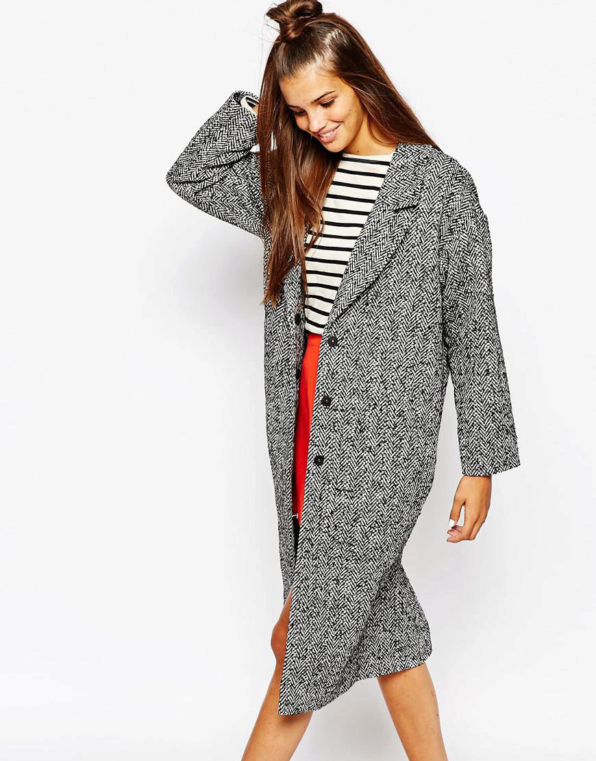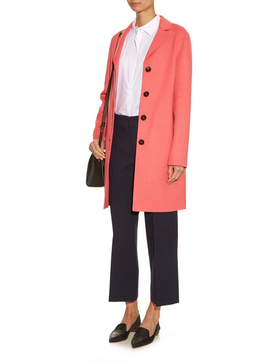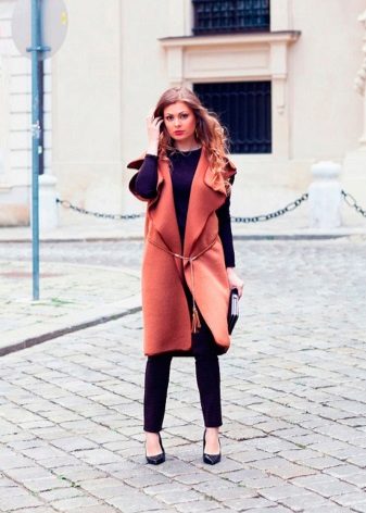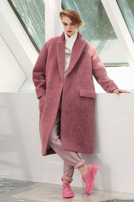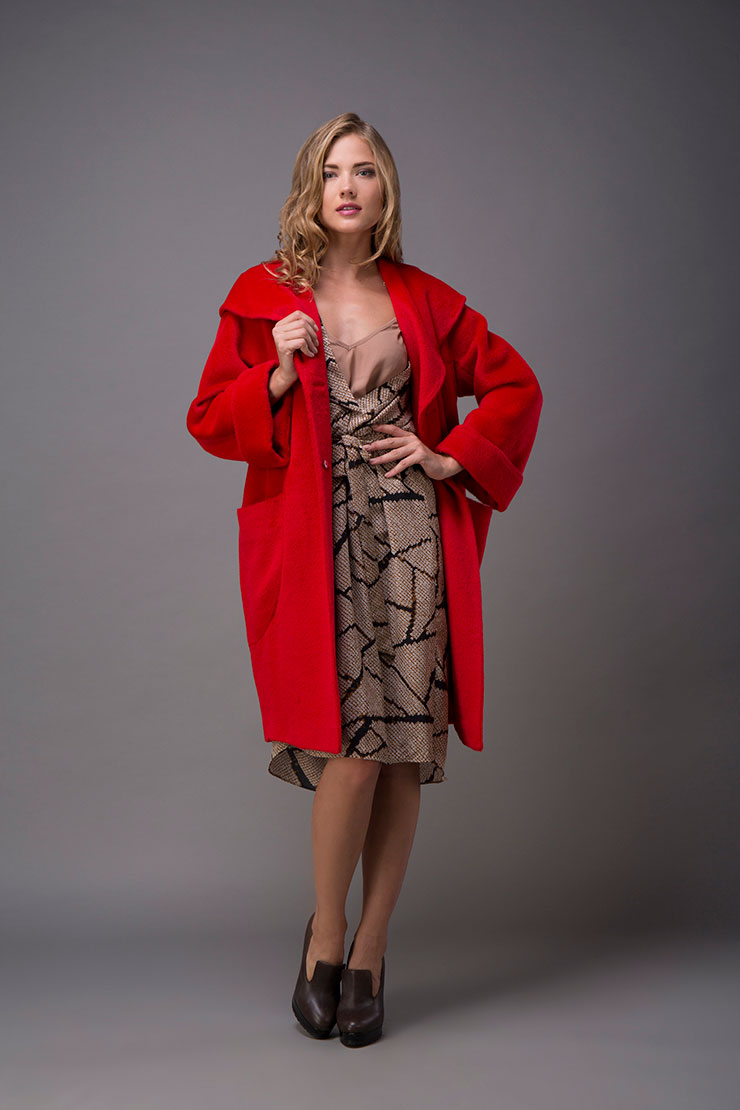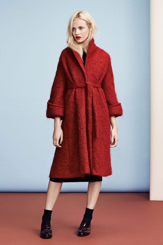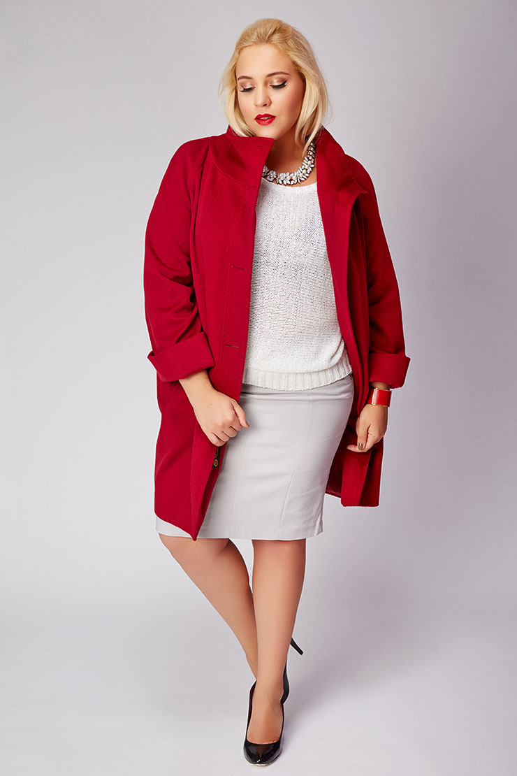 Color models will help to emphasize the advantages of a smart feminine figure. For example, a coat of rich red tone. In this case, we recommend two lengths: a short model (it should be fitted) or maxi (free cut). The main thing to remember is that such a bright thing needs to be combined with neutral accessories. Therefore, before buying, make sure that you have the appropriate shoes and handbag.