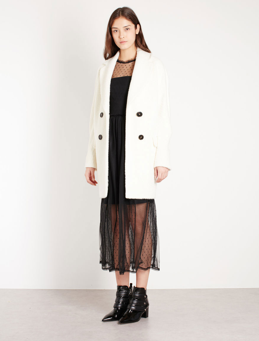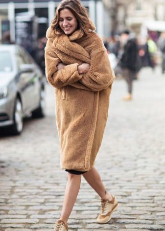 Great in large size looks alpaca fur coat with a smell. Hue is better to choose a light, but natural. So the image will be light and refreshing, like a spring breeze.
