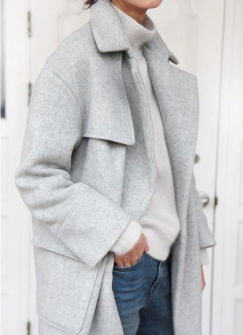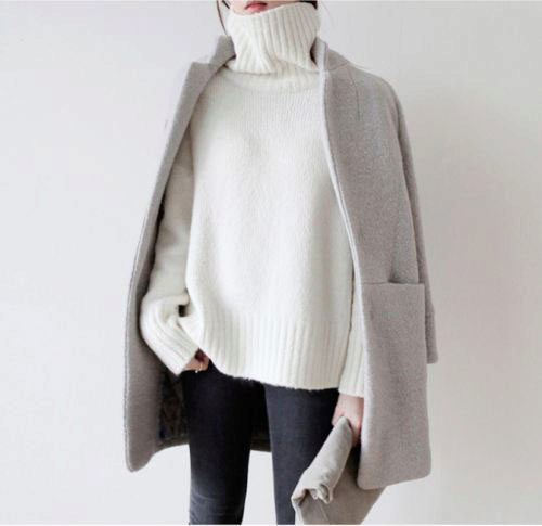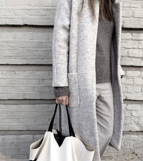 If strict straight trousers are your favorite piece of clothing, we advise you to choose a long coat of minimalist style and dark colors. Leather accessories - a bag, ankle boots, gloves - and alpaca wool - the perfect combination of textures.