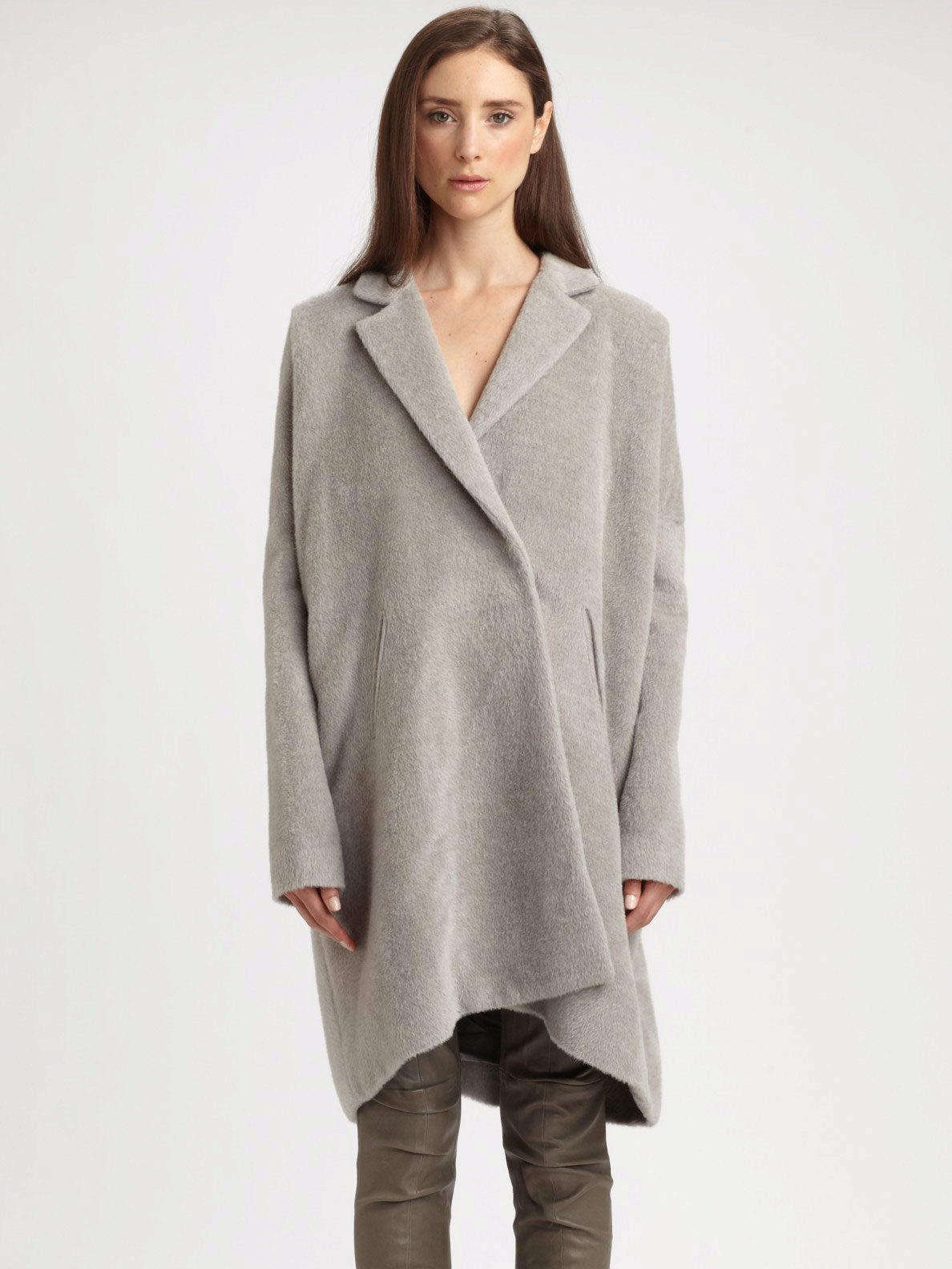 Since alpaca wool keeps its shape perfectly, coats of this material are created in a variety of styles and cuts. Double-breasted coat - a classic. Every brand you will certainly find such a style, because these coats never go out of fashion. The overseas fashion that has increased in recent seasons has led to the appearance of a large number of alpaca coats in just such a style. Its advantage is that it looks great on women with any type of figure.