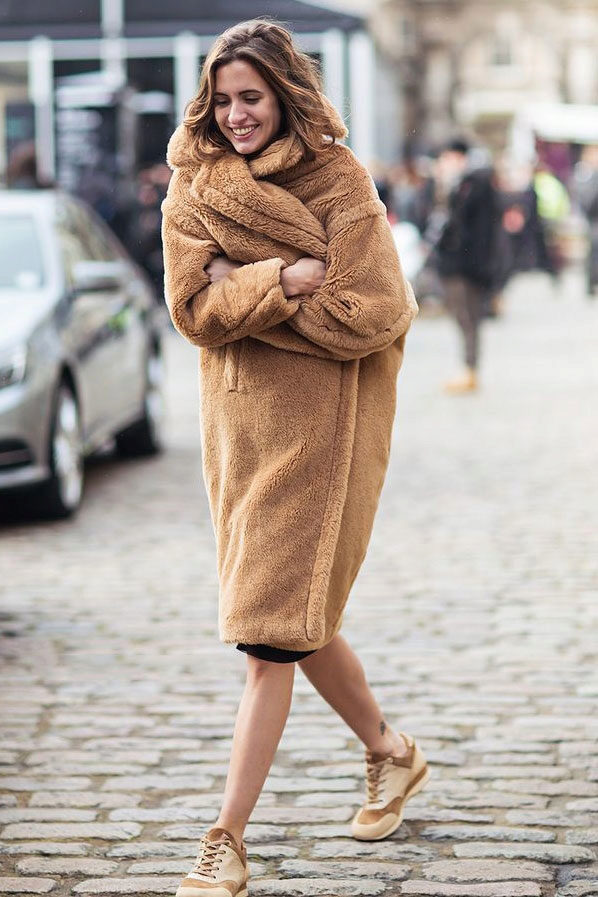 Another beauty of an alpaca coat is that it is a universal thing. It is perfectly combined with any variations of the classic or everyday feminine style. Consider some of the most interesting combinations.