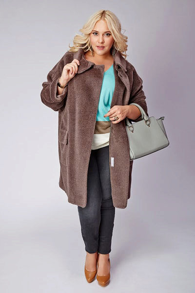 Another advantage of alpaca wool is the fact that it not only holds its shape perfectly, it also slims. And this is an invaluable quality when it comes to clothing of large sizes. After all, it is very important for owners of magnificent forms to look fit, and an alpaca coat will help with this.