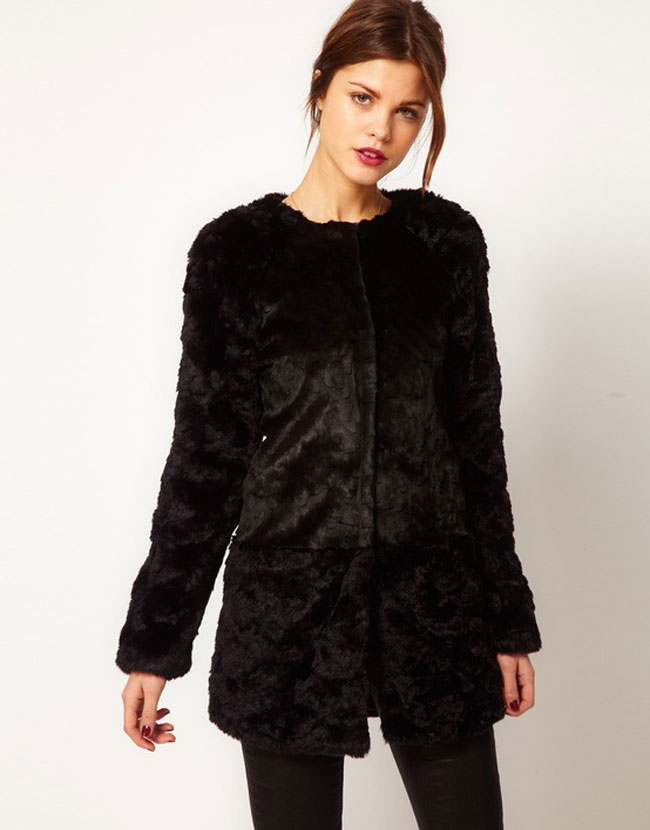 Short shaggy coats have a more mischievous look, so it can be combined with youth shorts and mini skirts, warm tights, platform shoes, hats, small handbags. With a classic coat fit more stringent things: pants, pencil skirt, skinny jeans, blouses, sweaters.