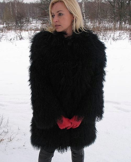 Alpaca hair is very durable, and the thing almost does not wear out. Things with a long nap look original. Shiny fur beautifully develops with every breath of wind, from which the coat takes fantastic shapes.