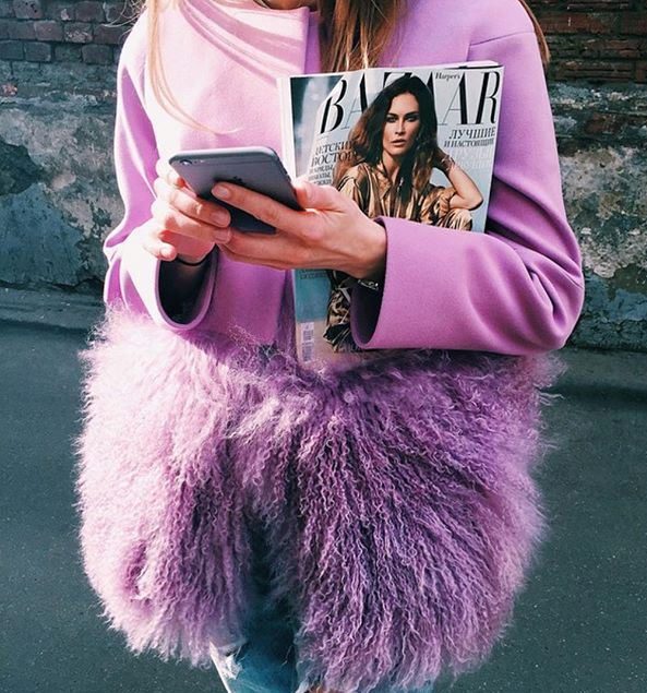 An elegant medium-sized bag fits well under a short-haired coat, and a clutch bag on a long strap or a backpack fits well under a fluffy fur clutch.