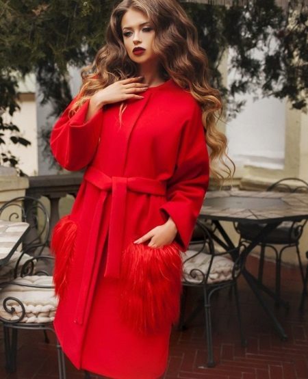Fur is often used to trim the coat. On the sleeves, collars, pockets and hems, you can see its different colors, which can contrast with the main type of product or, on the contrary, be matched to it. This coat looks very elegant.