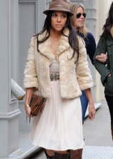 - skirts of various lengths and high boots with contrasting and bright sweaters look very fashionable and sexy in tandem with a muton coat;