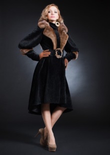 - A charming evening dress with high boots on a heel and a muton coat will look very harmonious;