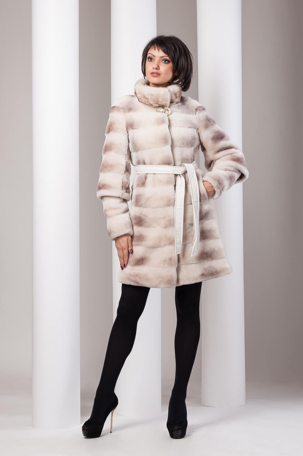 - Universal gray fur coat, allowing you to choose shoes and accessories in contrasting black or white to create a stylish and youthful image.