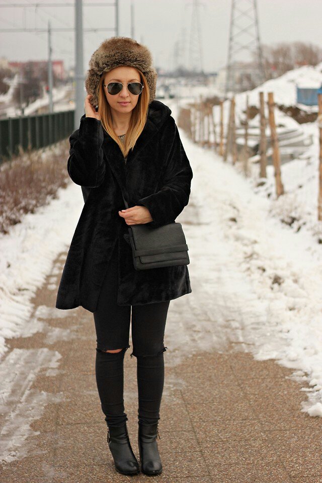 - high boots, boots and heeled booties look incredibly stylish complete with a mouton coat and visually make ladies legs slimmer and longer.