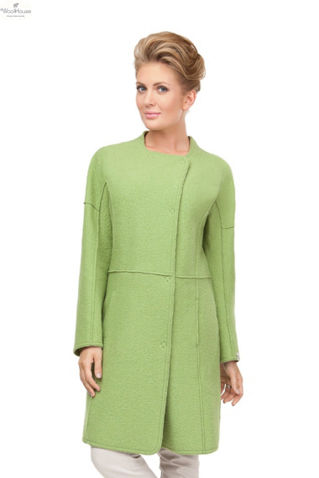 The styles and forms of coats of boiled wool are extremely diverse. The most classic option: the length is slightly below the knee, with several large buttons in the middle - this style is practical and versatile, but it is not without elegance and chic.