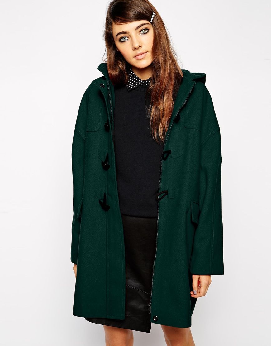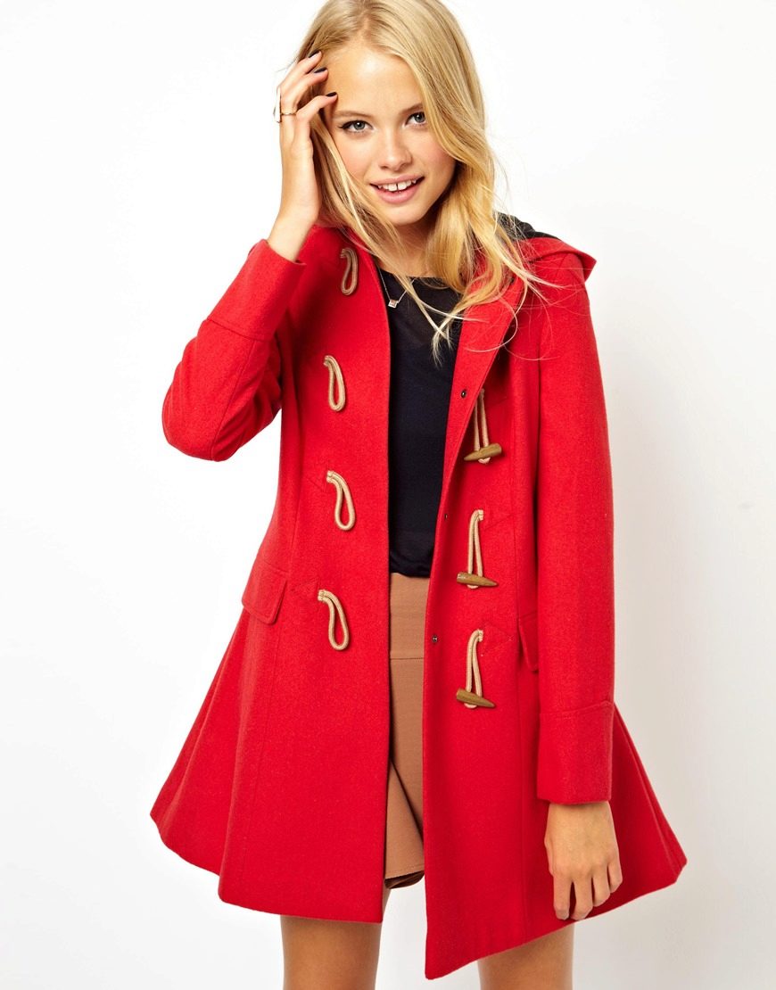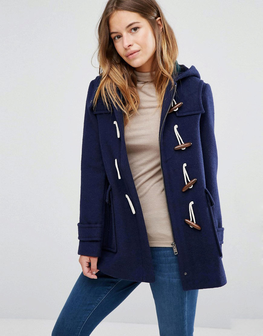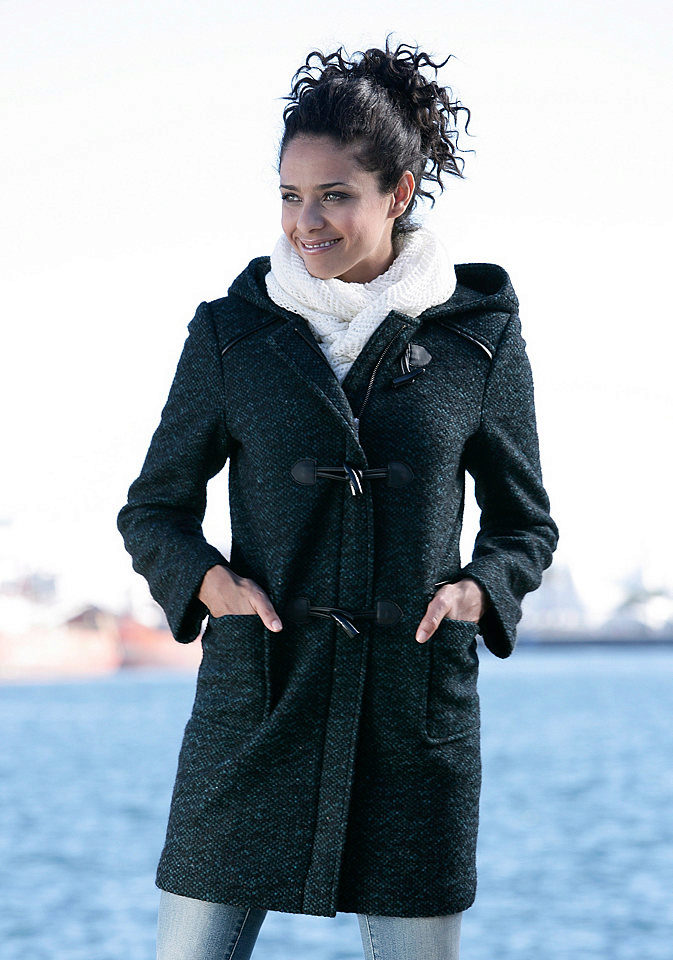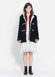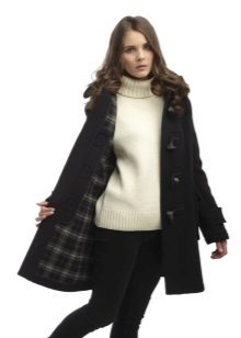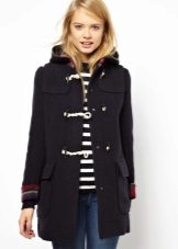 Despite the fact that the coat got its name in honor of the fabric, which was originally used for sewing (eng. Duffle coat), today this model is recognizable thanks to another distinctive element - large oblong buttons resembling bone and large leather loops. For many years this convenient and practical thing has not lost its relevance, and large buttons can often be found on knitted products.