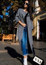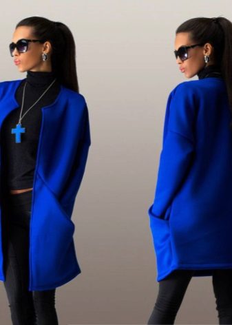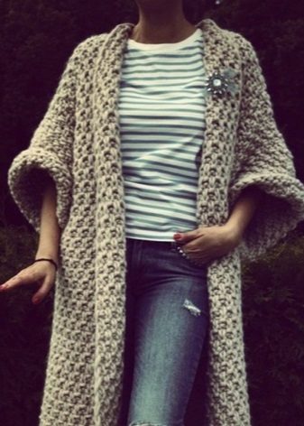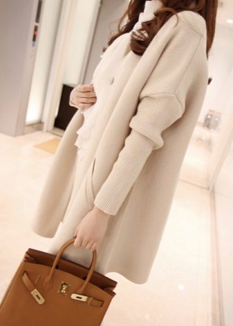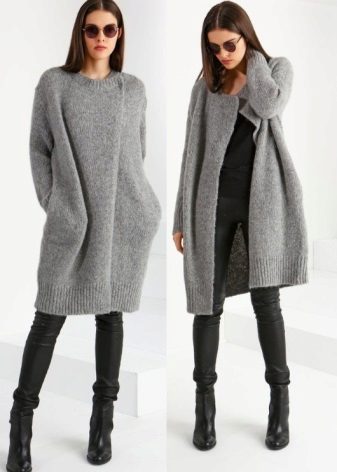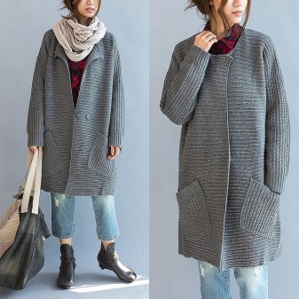 A buttonless coat cardigan is suitable for girls with almost any type of figure. In fact, it is a long, dense, fastenerless cardigan that is designed to warm up early in the fall. The style and length of such a coat can be any, but the most popular models are medium length oversize.