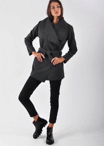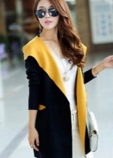 Since cardigans without fasteners are very popular today, the use of a contrast belt that will not only emphasize your waistline, but will not allow you to freeze in an open coat, will be relevant.
