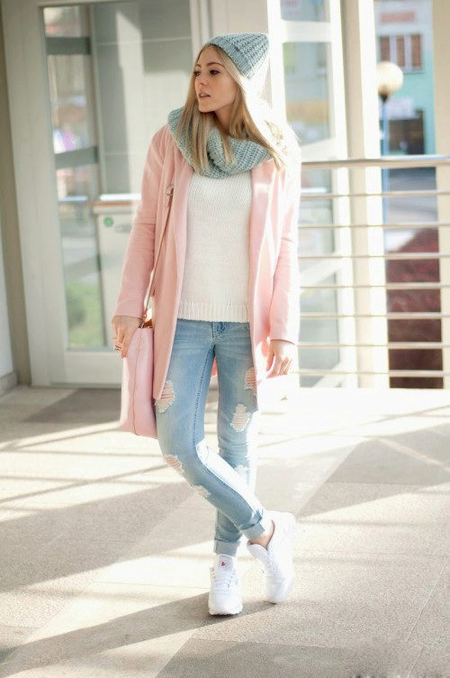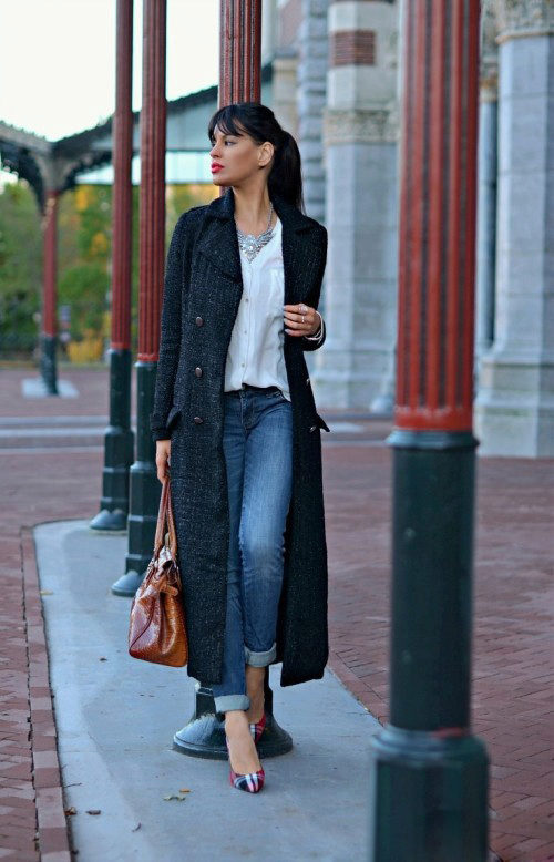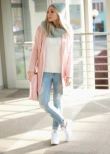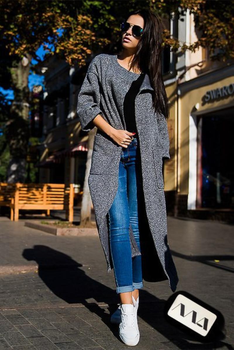 If you prefer a casual or similar style, wear a cardigan coat with jeans of any style. It can be skinny, boyfriends, flared jeans. Choose comfortable shoes and stylish accessories for them, and get a great look for every day.