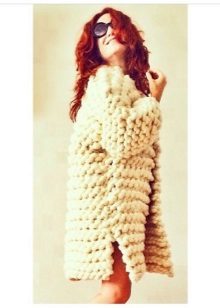 The thick-knit cardigan coat looks chic and stylish. Large loops attract attention to themselves, not letting you go unnoticed. The product is very dense and keeps its shape well, but at the same time it is very soft, airy, especially if you get a high quality knitted coat.