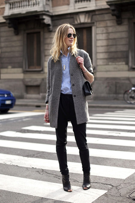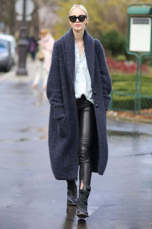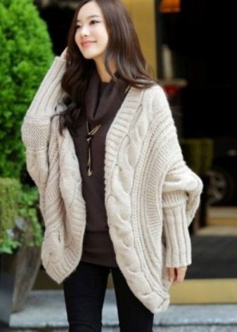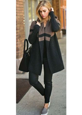 A coat cardigan will look good with a pencil skirt or a trapezoid silhouette. It can be worn to work, to a party, wear a date. Leather models will look good - a combination of two opposite textures will invariably attract attention.