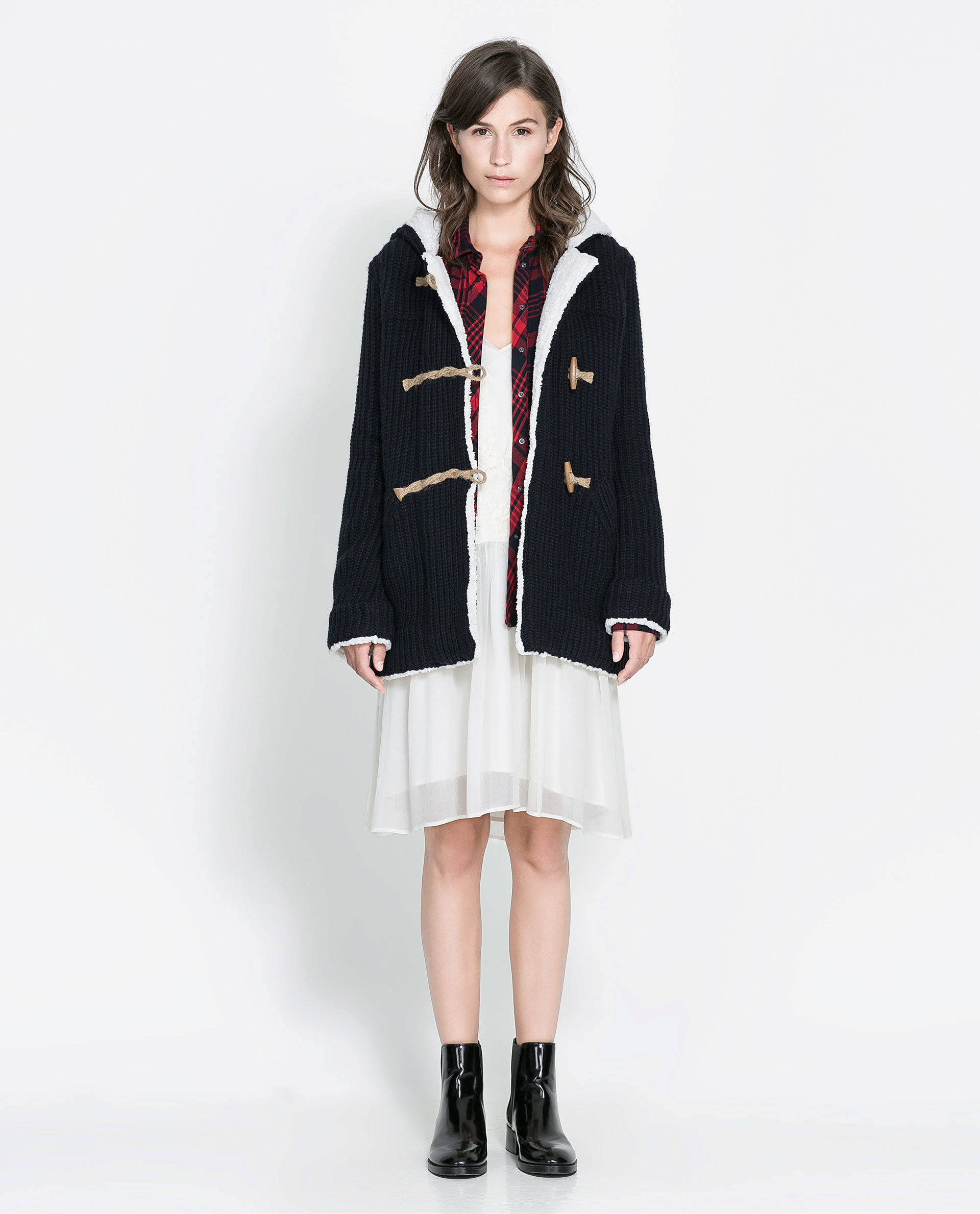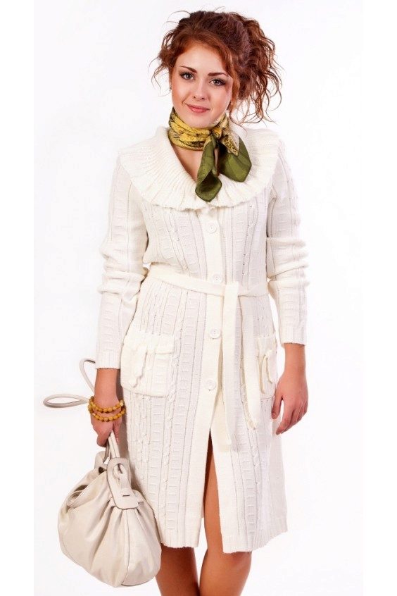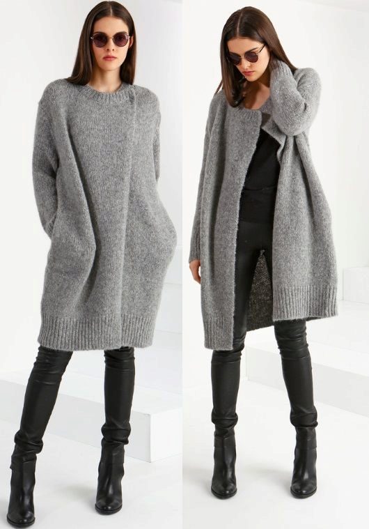 It is easy to care for him, unlike wool fabrics, knitwear can be machine washed and subjected to any other kind of cleaning. In addition, it is an inexpensive and high-quality material, so the purchase of a cardigan coat of thick knitwear will be available to any fashionistas.