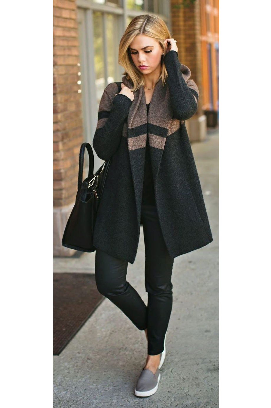 Stylish cardigan coats with a hood are at the peak of popularity. This is a convenient and practical thing that will warm you on a cold autumn day. Pay attention to the models on the lining, which are much warmer than regular knitted coats. Cardigans with a furry on a hood look effectively. In them you will look elegant and stylish.