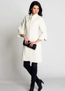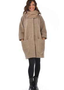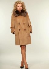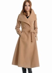 All right, on discordant figures a comfortable oversized coat looks. But it should be chosen without unnecessary decorative elements. Another undoubted favorite is a trapezoid-shaped cashmere coat with three / quarter loose sleeves. Flared models of cashmere coats for young ladies in their bodies are also a great solution. Harmoniously on full looks a coat-dressing gown with a smell, without a fastener. A long luxurious coat-mantle will create a royal image of a woman.