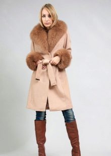 One of the most popular models is a comfortable cashmere bathrobe. This season's trend is a coat with a belt oversized. Sleeveless cashmere coat is useful for autumn or spring, it will be especially appreciated by ladies who spend a lot of time behind the wheel. Duffle coat from cashmere will appeal to fans of sports style. Quite seldom found models of cashmere coats - a cap with a cape and capes.