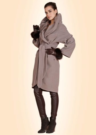 Modern designers use a hidden fastener on a cashmere coat, so as not to spoil the precious material. As for the decor - no strazikov, pebbles and other "beautiful". Conciseness and aristocracy - these are the main qualities of a traditional cashmere coat.