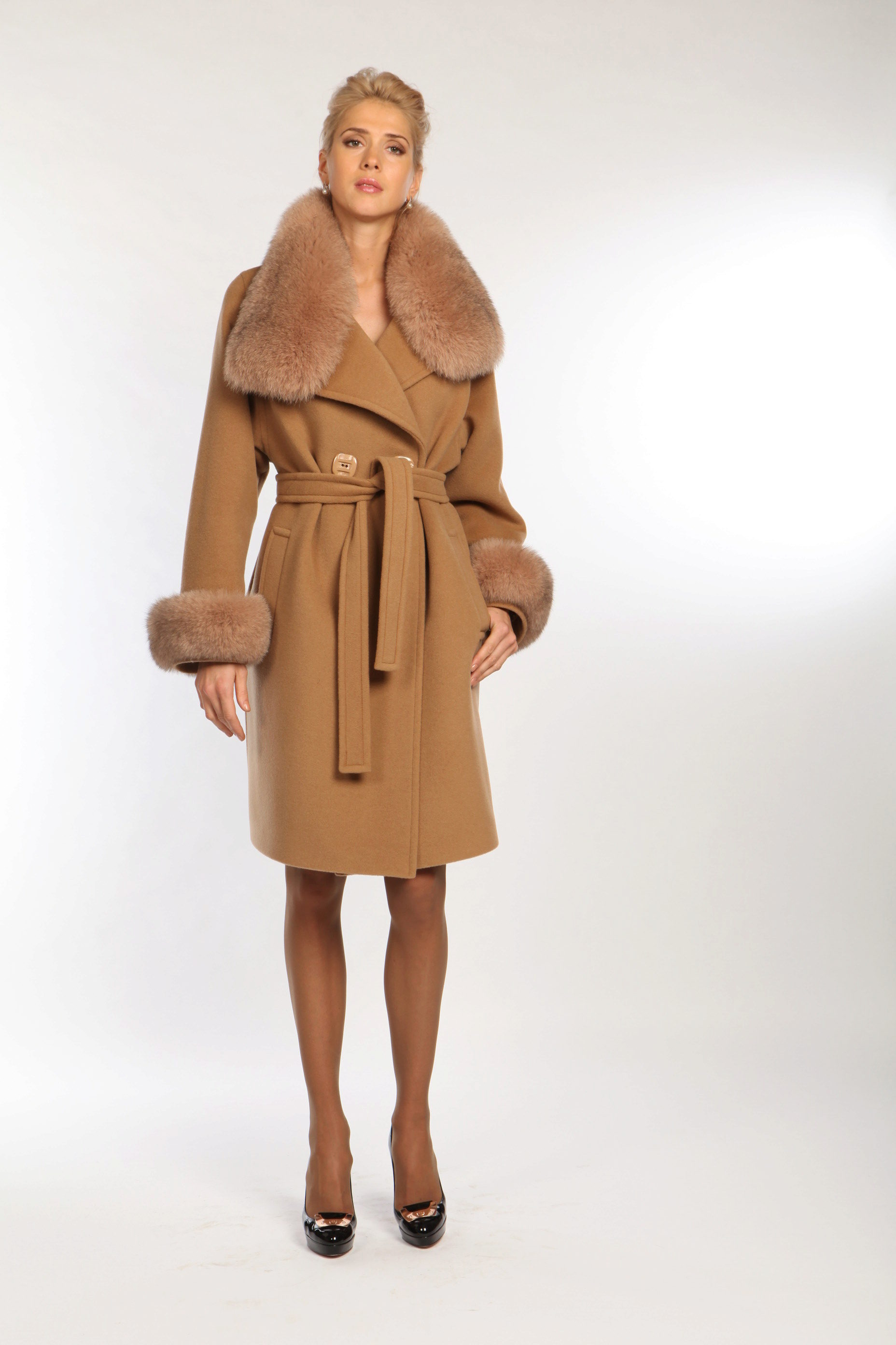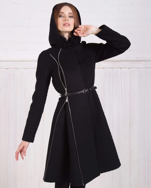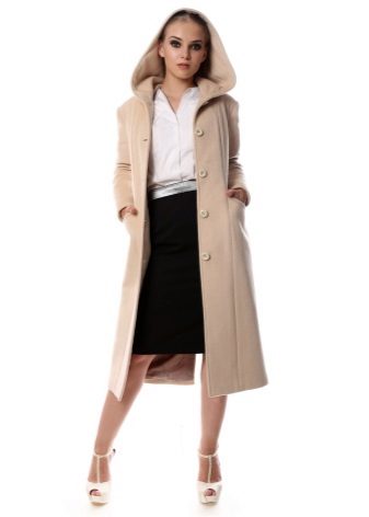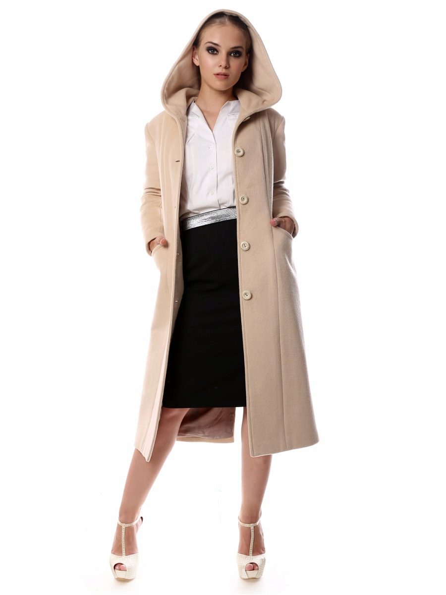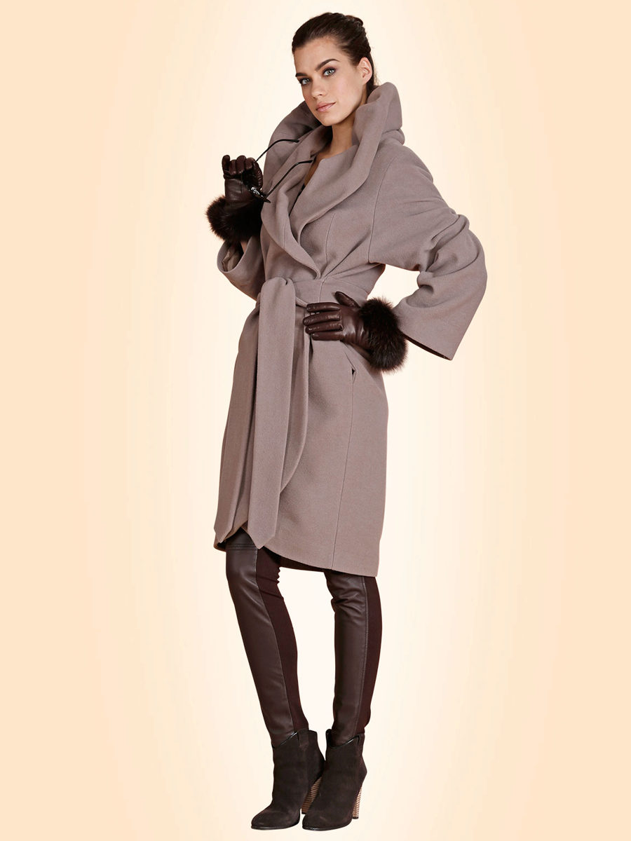 For social events we advise you to purchase a cashmere coat with a luxurious fur collar. The hood is one of the fundamental elements of a cashmere coat. As for the sleeves - most often used is a straight cut of the sleeves with a free edge. Too wide sleeves may distort the image.