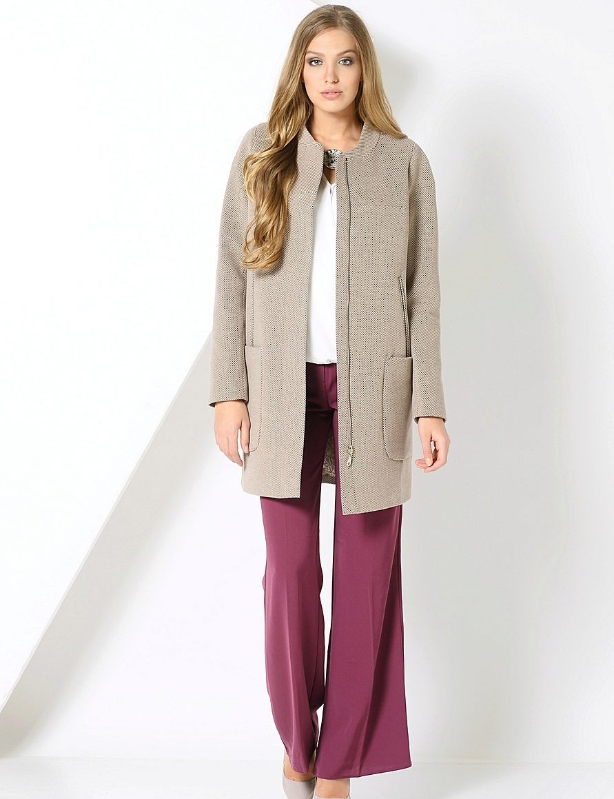 Fat women should not mask the flaws of their figure with immense robes, they only emphasize them. A classic straight-cut cashmere coat will help to create attractive images. The ideal length of such a coat is slightly above the knees or to the middle of the calf, the elongated cut should be neglected.